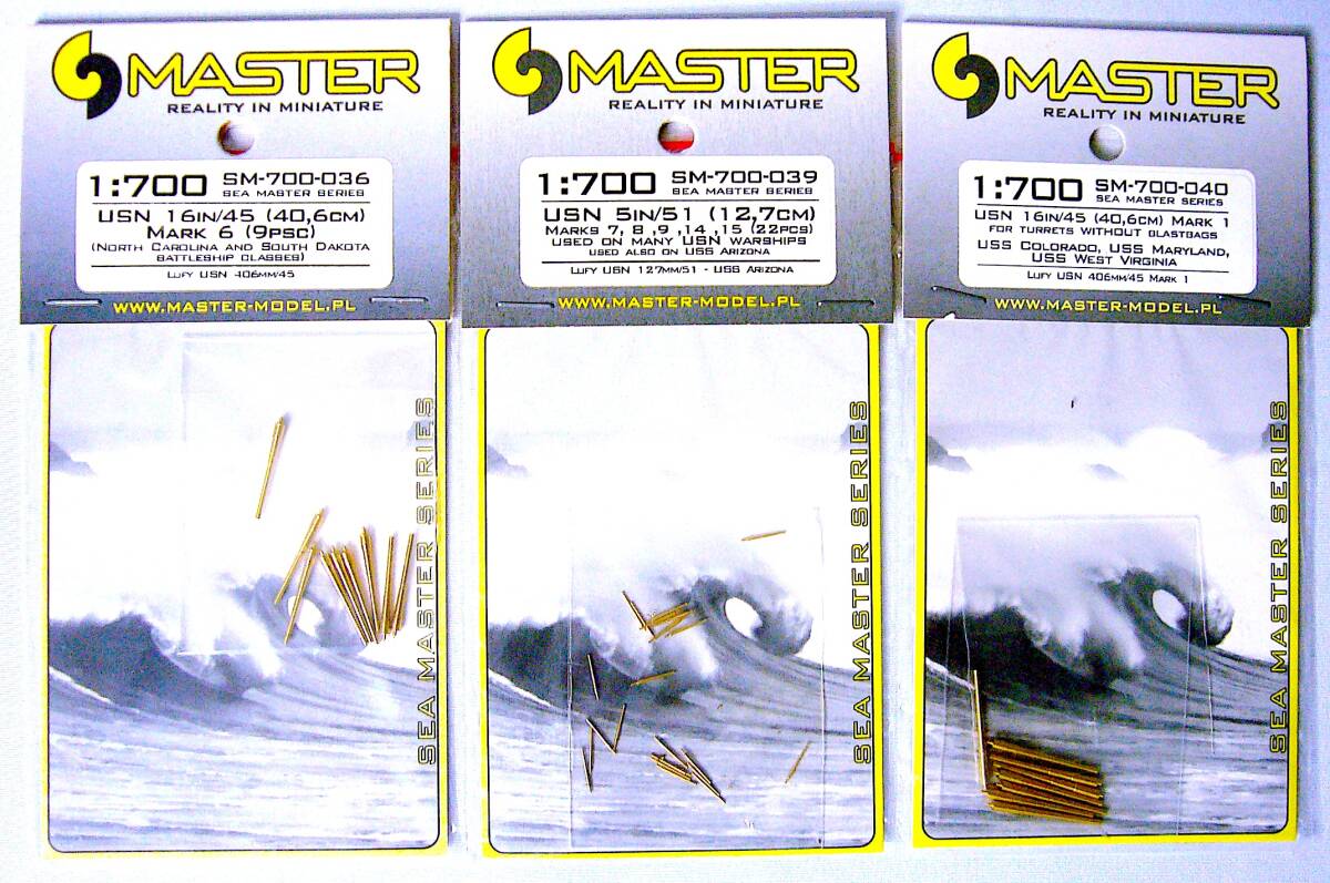 ・ マスター 1/700 WWII アメリカ海軍 16インチ (40.6cm)/45口径砲 Mark 1 砲身 ブラストバッグ無し砲塔用 (8本入り) USS コロラド/USS メリーランド/USS ウェストバージニア用 (SM-700-040)