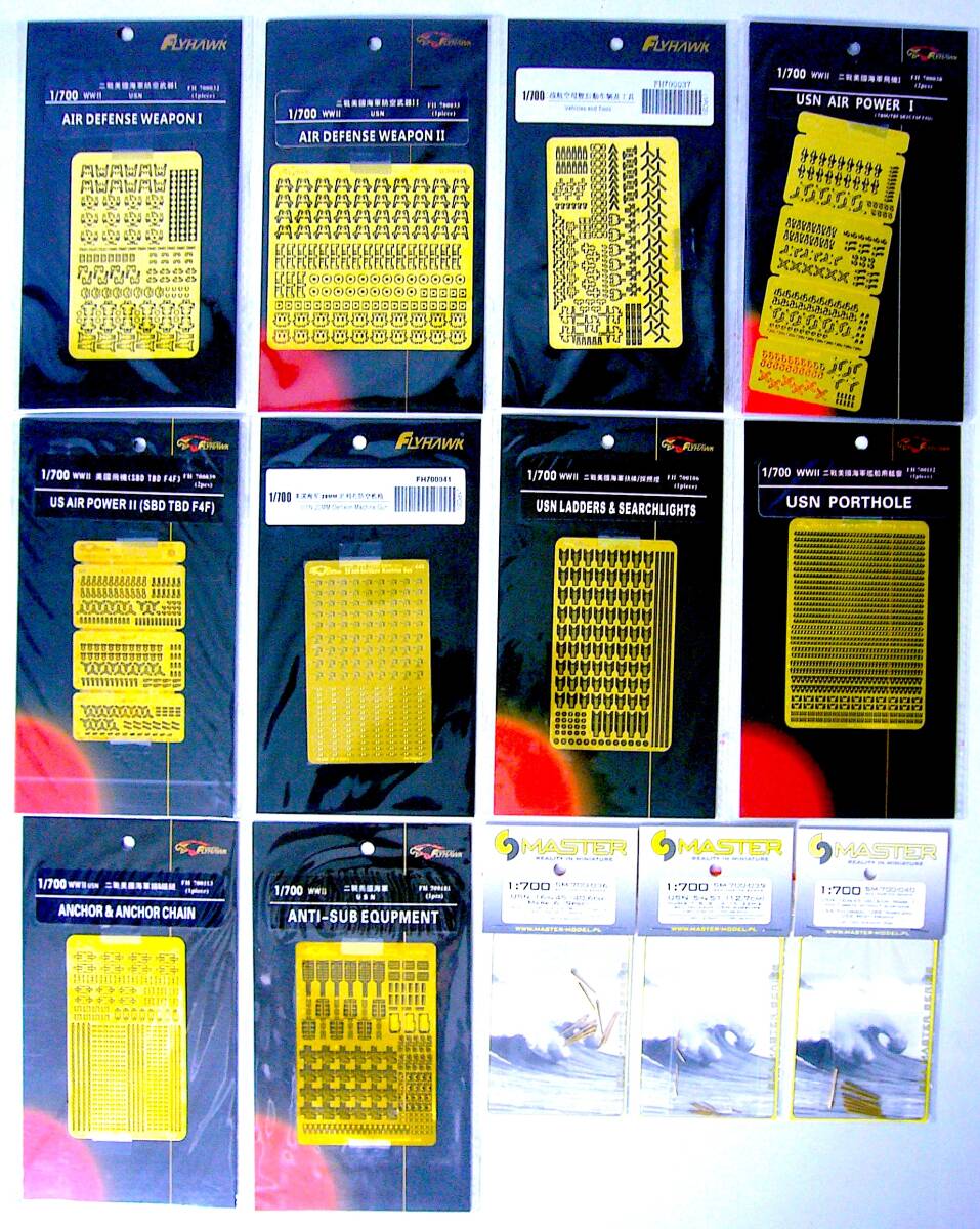 フライホーク/マスター 1/700 WWII 米海軍 艦艇用対空機銃/空母甲板作業車/艦載機セット/艦載砲砲身ほか エッチングパーツ 13個まとめ売り