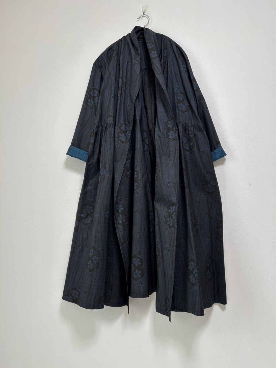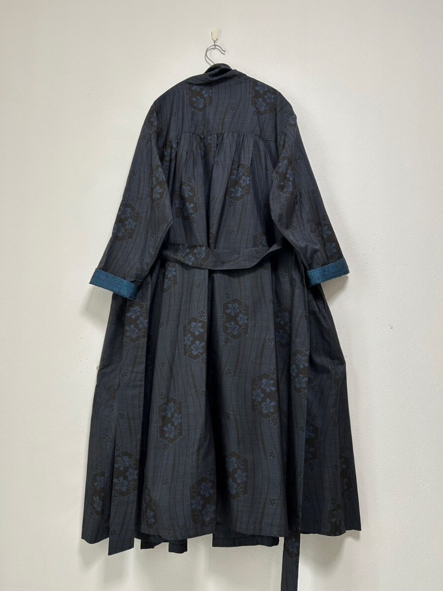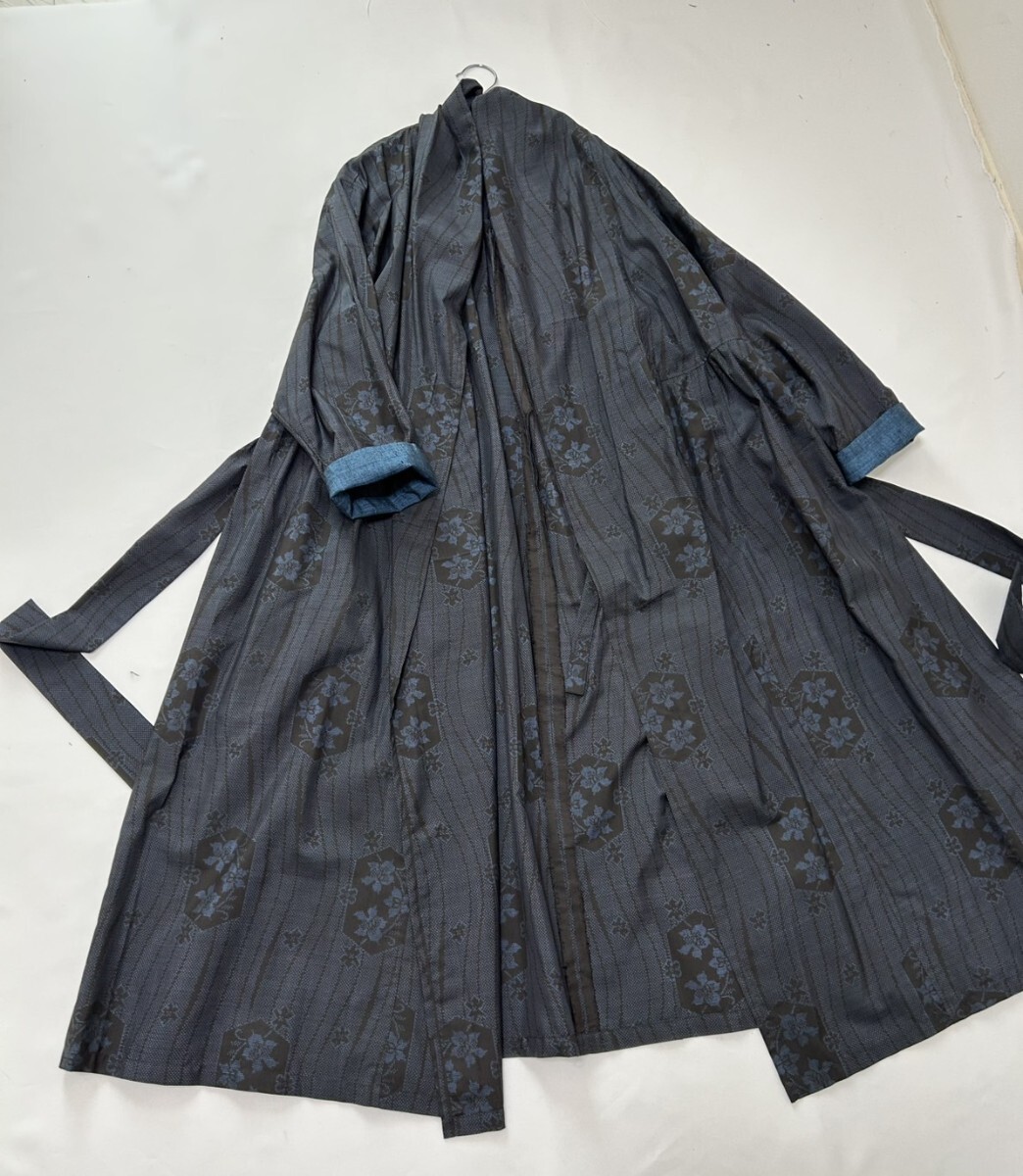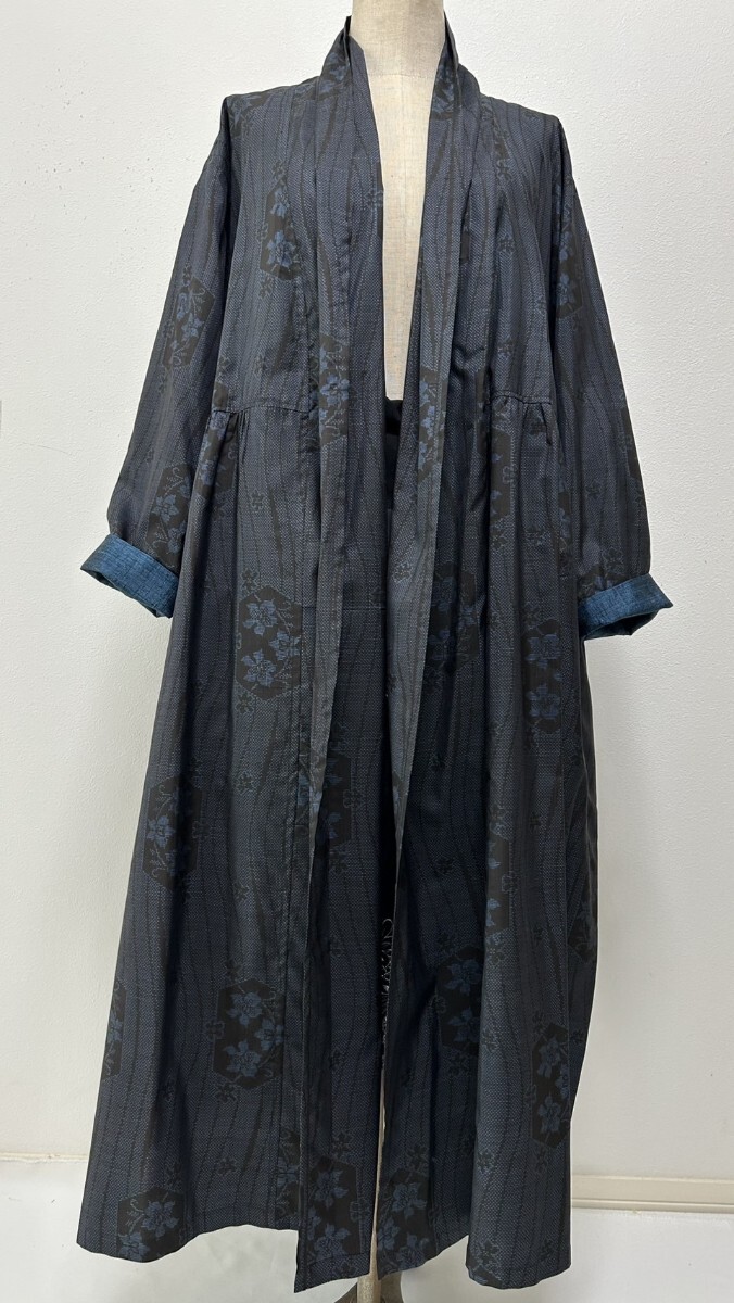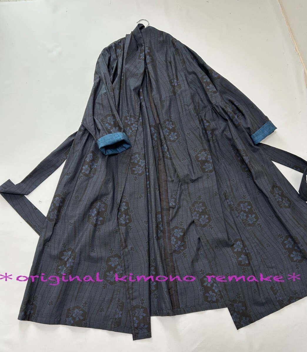 新品未使用★7マルキ花柄大島紬★カシュクールワンピース★着物リメイク★長袖ワンピース★ハンドメイド★羽織
