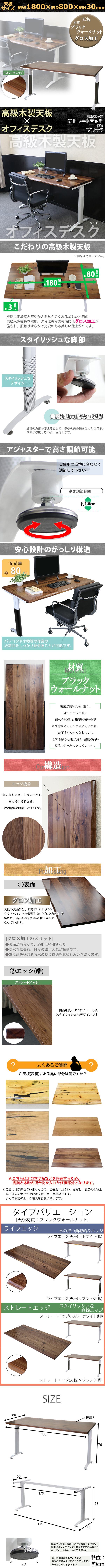 | 商品名 | 送料無料 オフィスデスク デスク 約W180×約D80×約H76 約W1800×約D800×約H760 ブラックウォールナット材 高級 木製 天板 グロス加工 耐荷重約80kg(脚部) 平机 ワークデスク 事務机 パソコンデスク PCデスク 事務デスク オフィステーブル オフィス家具 ストレートエッジ 脚色 ブラック t016180bkwag |