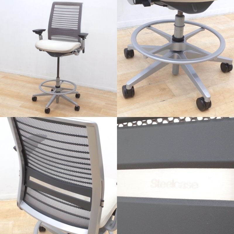 スチールケースのThink シンクチェア。こちらは、足掛け付きのハイタイプ! ”座る” という行為に対して研究し尽くし、姿勢に応じてチェア自身が追従する「体重感知メカニズム」を搭載。 自然な姿勢をサポートする「アンクルチルトリクライニング」を搭載。 長時間の座り姿勢もしっかりとサポートし、腰痛持ちの方も安心です。 ハイテーブルやカウンターにもお使いいただけて幅広いシーンでお使いいただける便利チェア!ぜひ空間に合わせてマルチに活用ください。 ※写真で掲載の商品そのものが届くとは限りません。複数入荷した中の1点を掲載している場合がございます。 ※座面クロスが使用により変色が見られます。詳しい状態については、ぜひお気軽にご連絡ください。 |