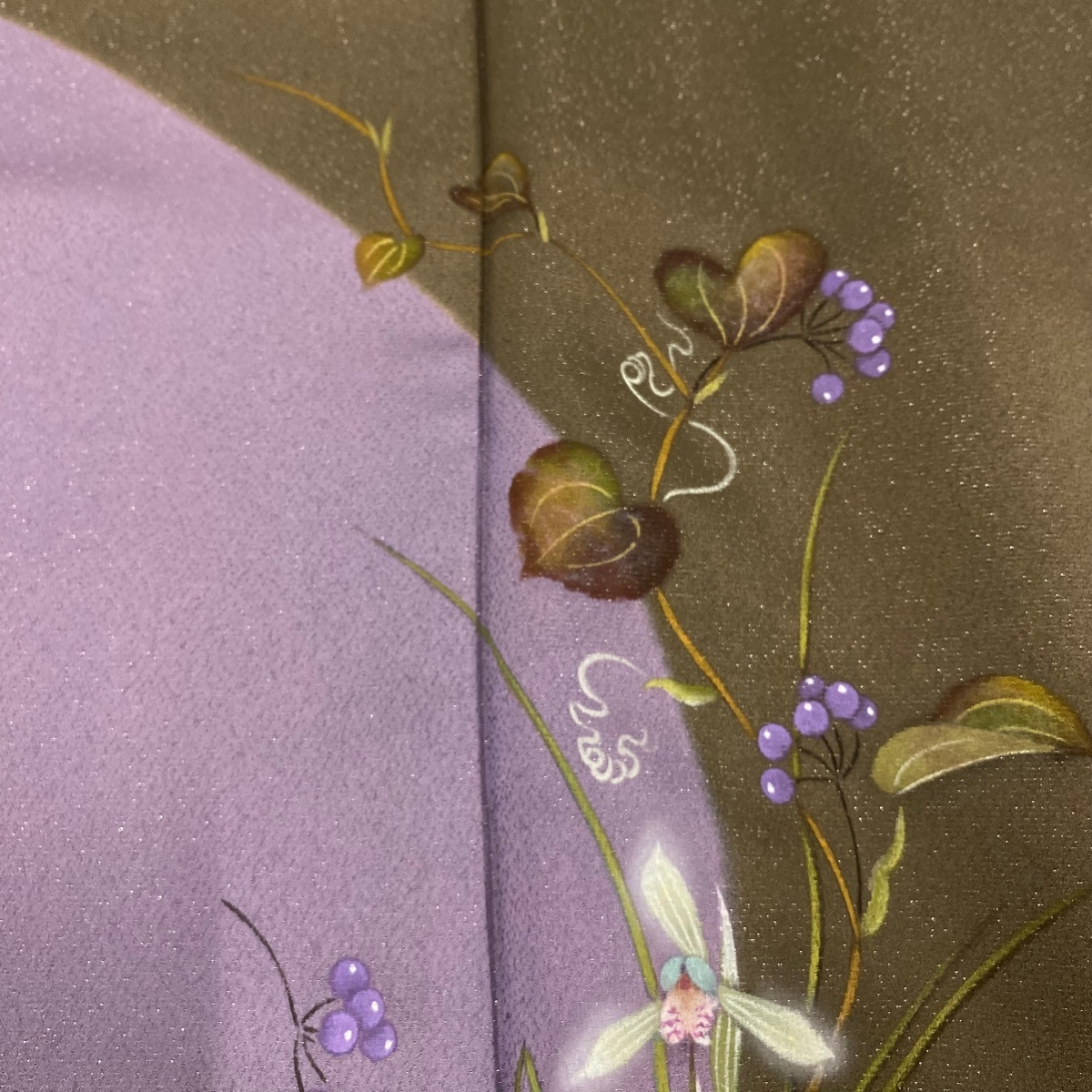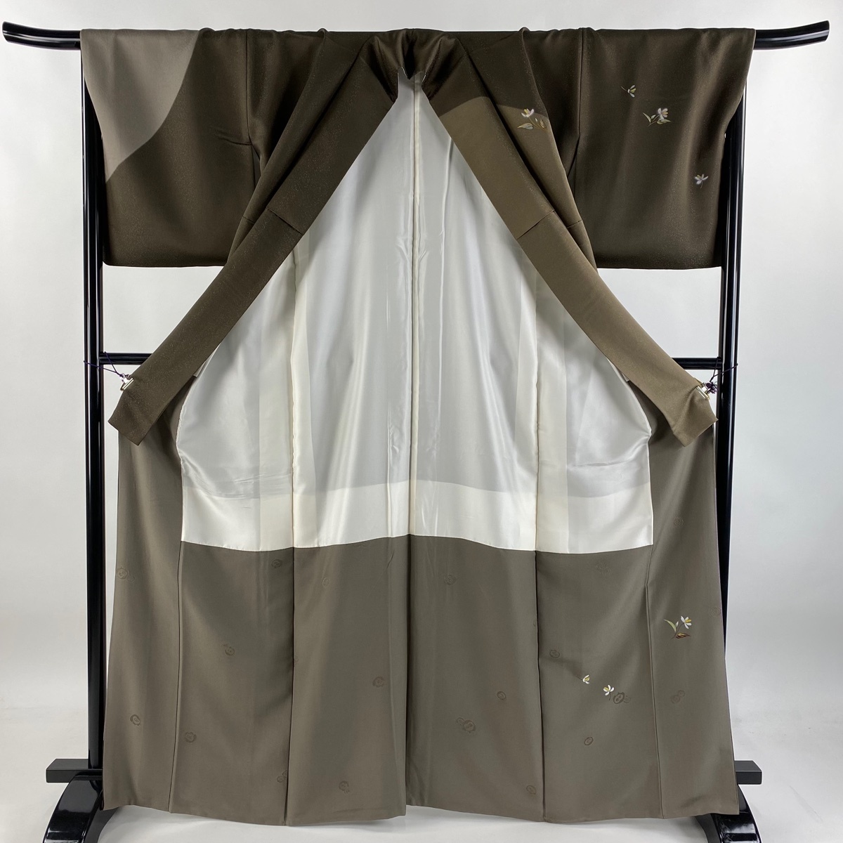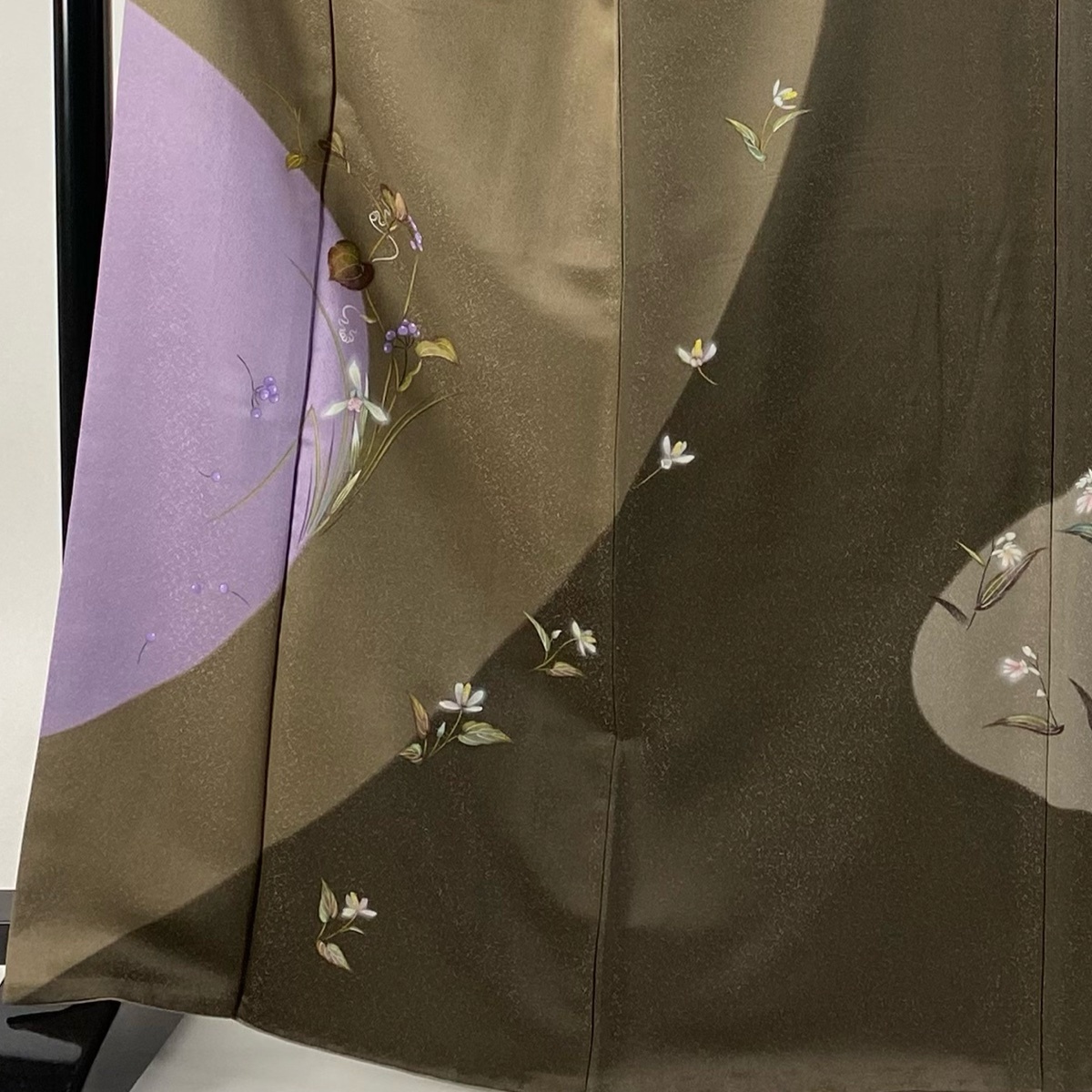 | 訪問着 秀品 落款 草花 実 銀通し 金彩 焦茶色 袷 身丈165.5 裄丈67.5 L 正絹 【中古】 |