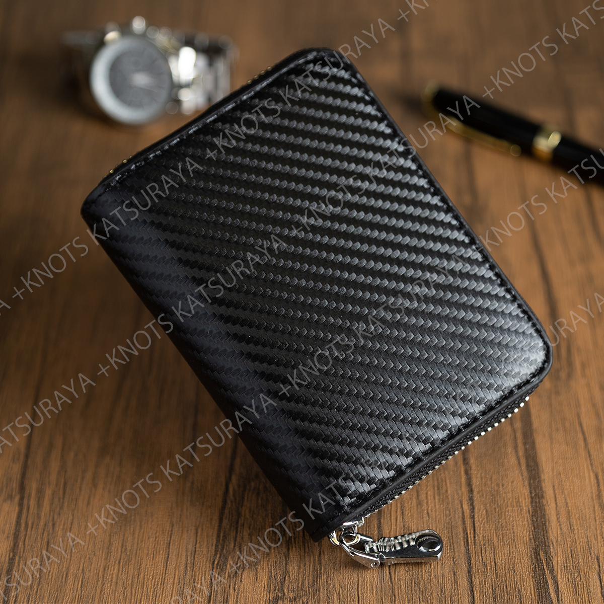 カーボンレザー ミニ財布★ブラック★小銭入れ メンズ レデース 小さい 小型 コンパクト ラウンドファスナー ジップ 財布 本革 レザーa250