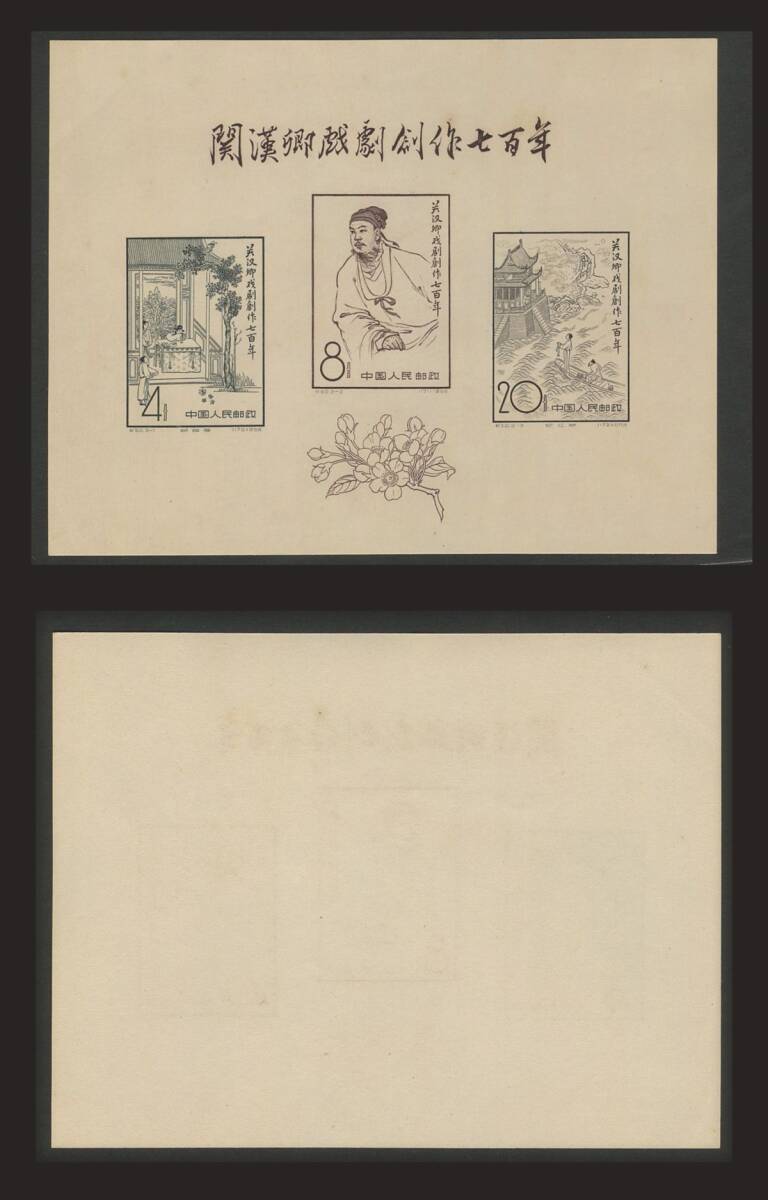 外国切手 中国 (紀50m)1958年「関漢卿組合せ」小型シート 未使用