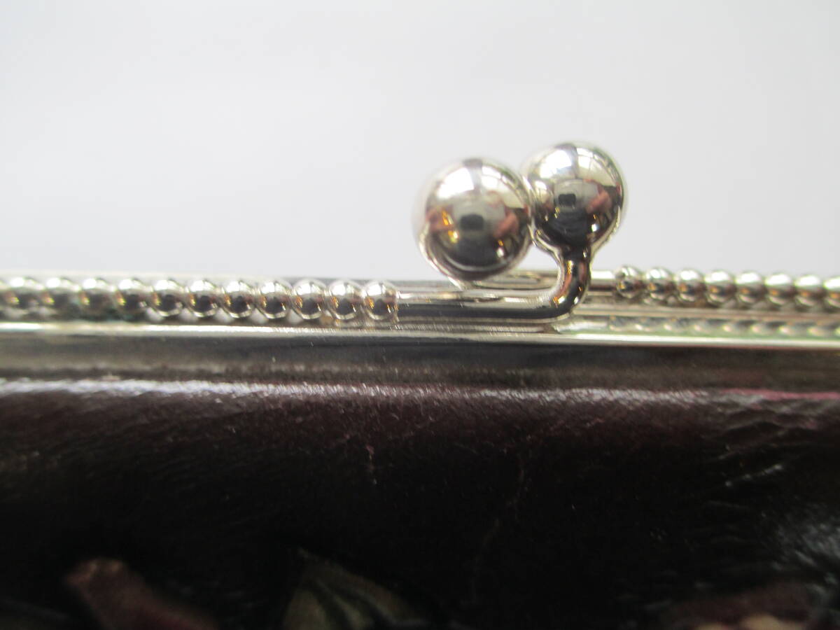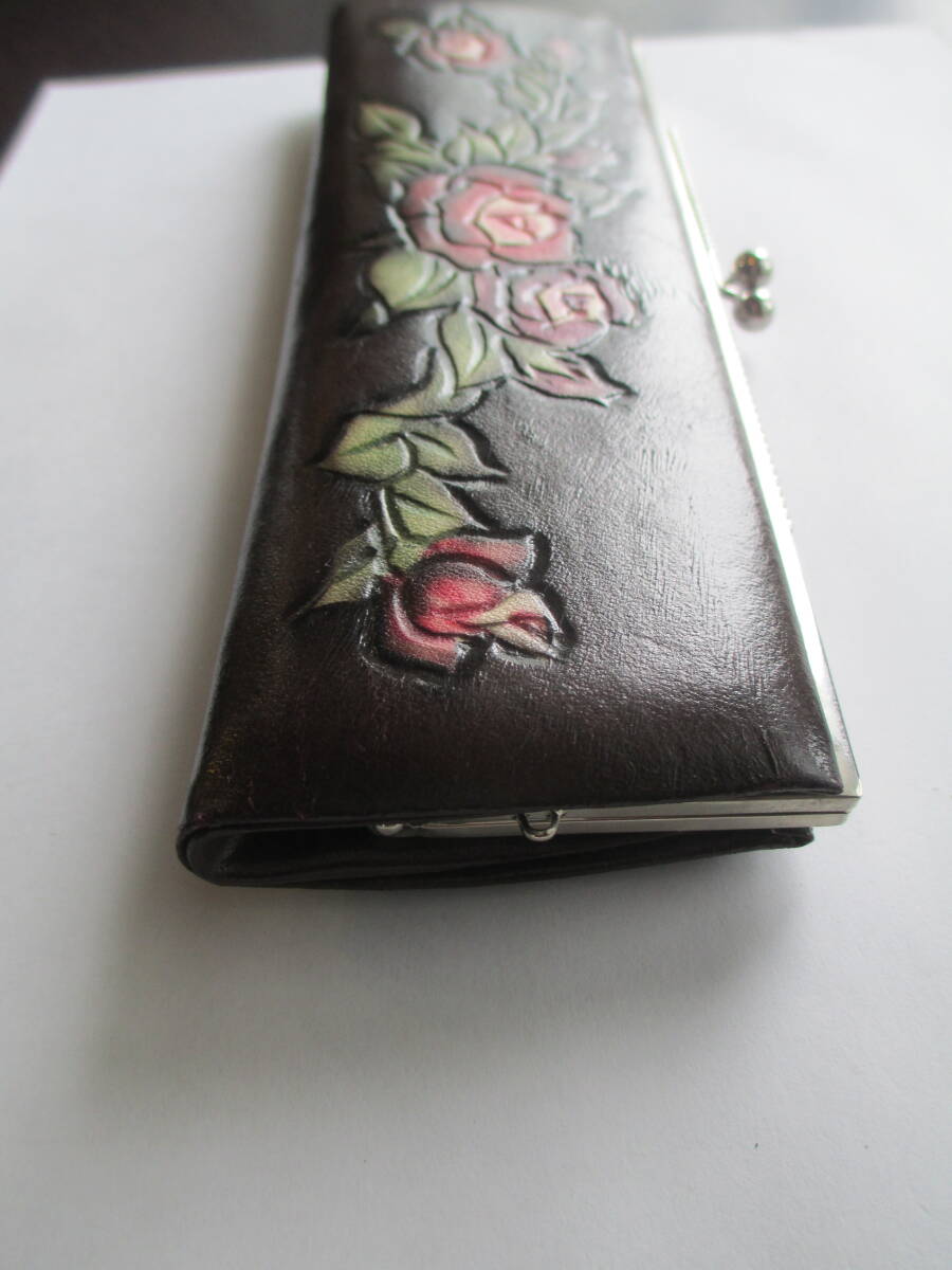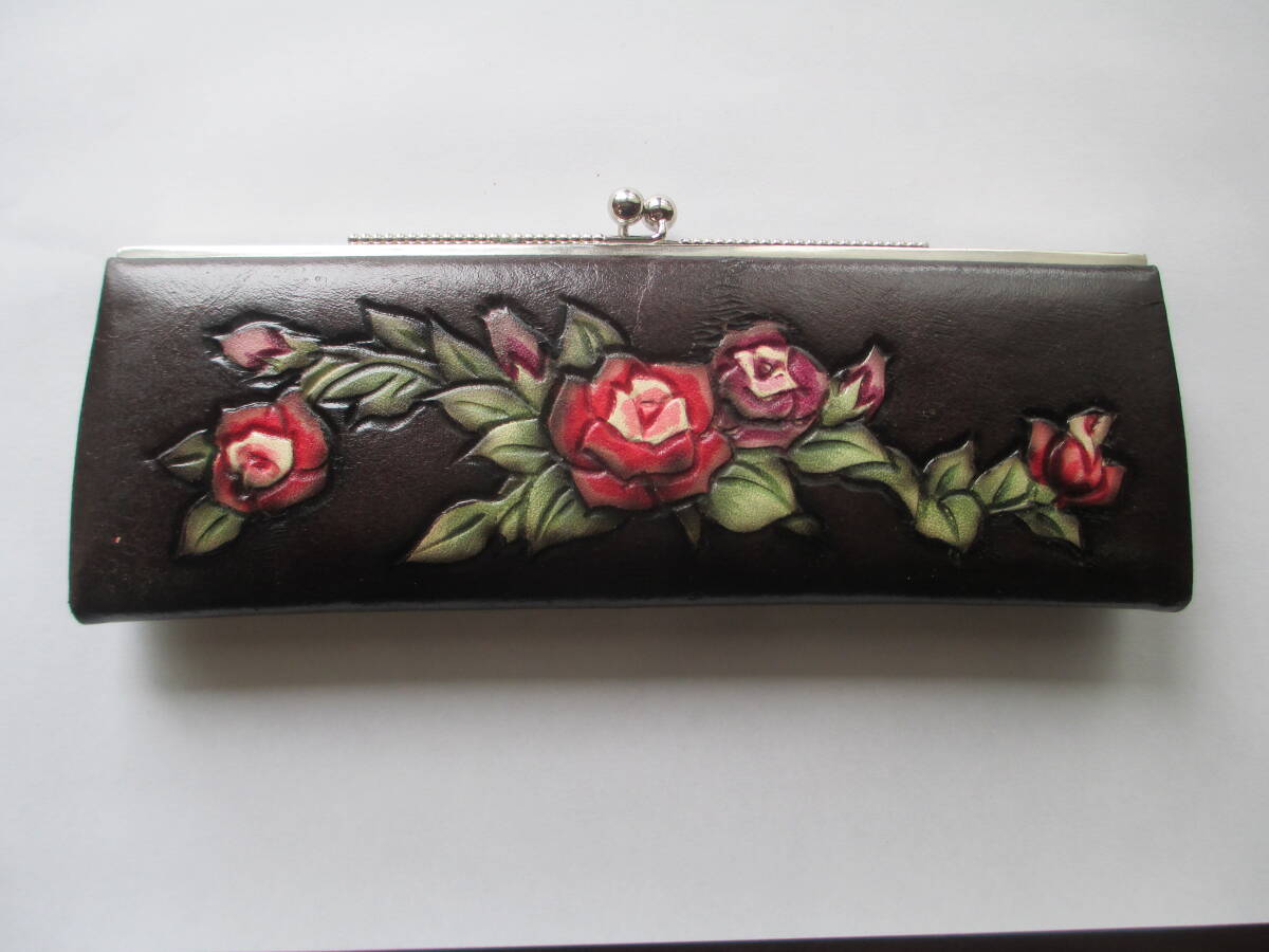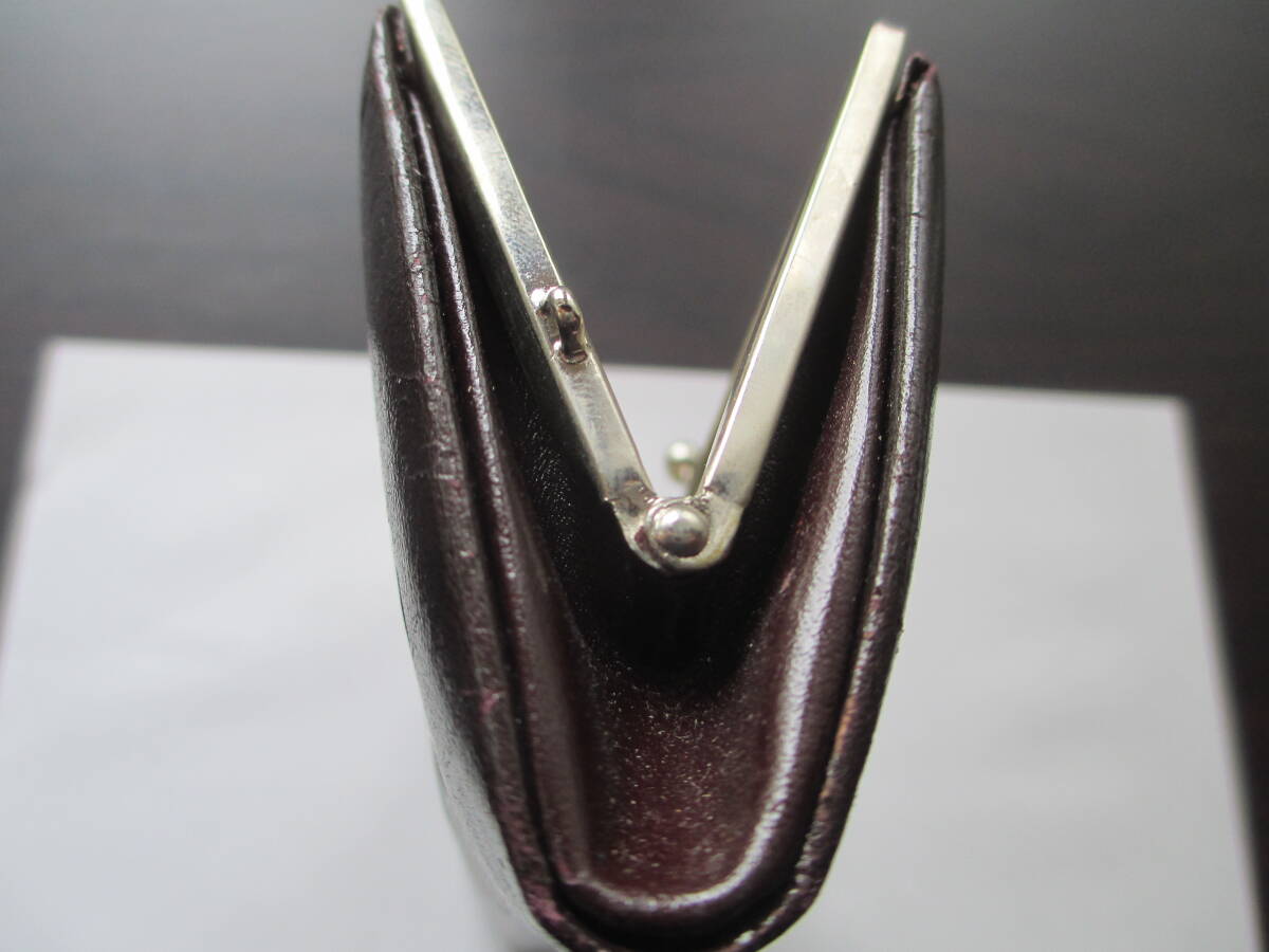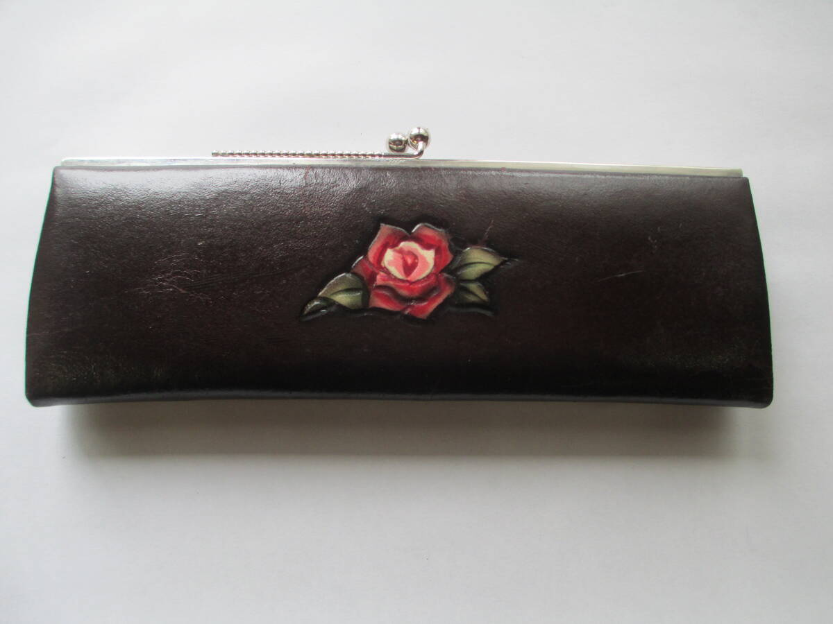『 がま口  ペンケース (筆入れ) レザー  花柄  』 小物入れ ペン入れ ブラウン系 かわいい レトロ風 中古