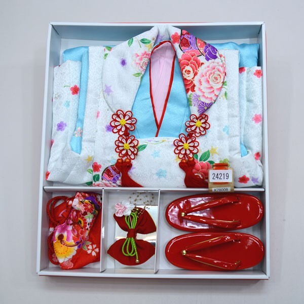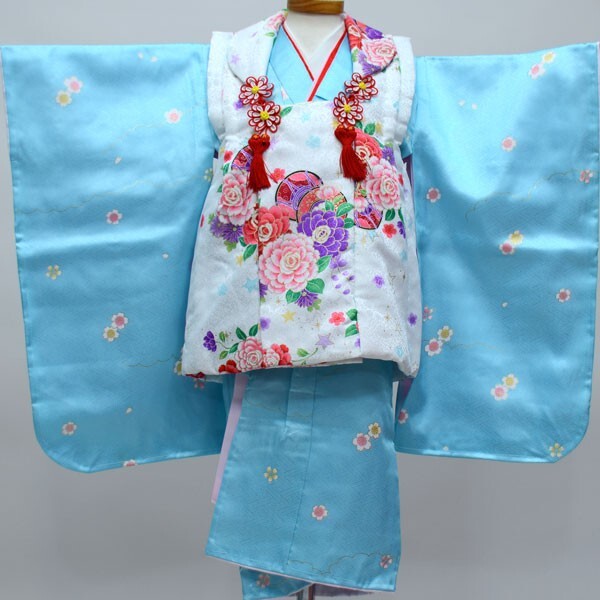 | 項目 | 三歳被布着物フルセット ・着物 ・長襦袢 ・被布コート ・巾着 ・髪飾り ・草履 ・付け紐2本(着物縫付済) ・着付け説明のご案内(ご要望のお客様のみ、詳しくは以下明記しております) 以上フルセット |