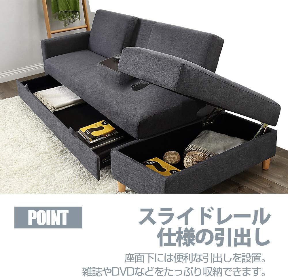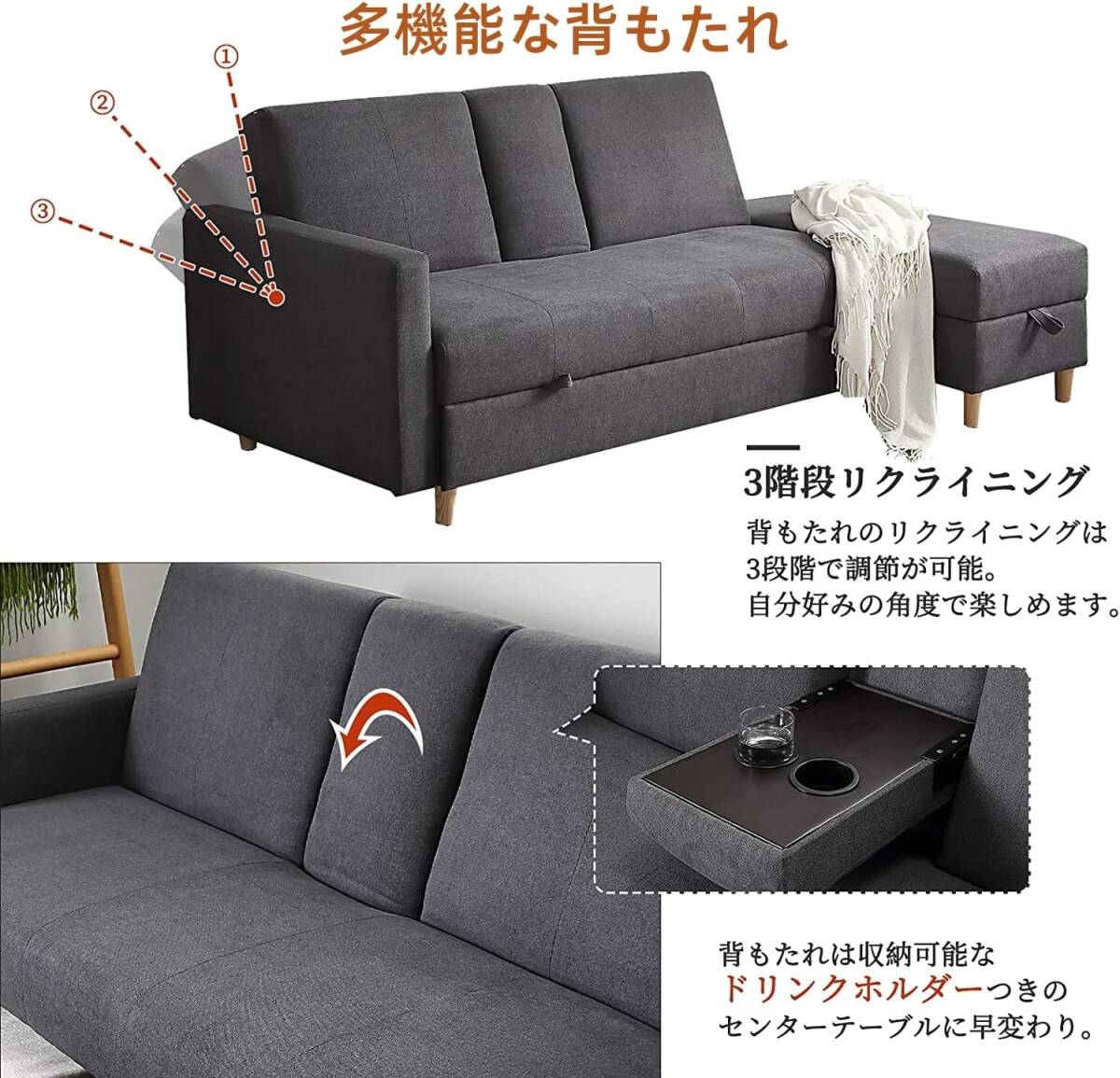 ソファー 3人掛け ソファ 多機能ソファベッド 収納機能 引き出し オットマン おしゃれ コーナーソファー コーナー【ダークグレー】