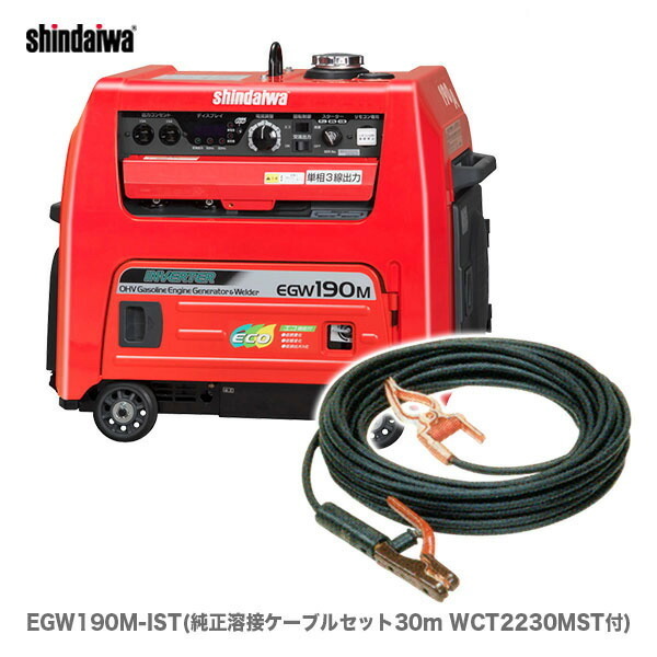 〈新ダイワ〉発電機 兼用 エンジン溶接機 EGW190M-IST 純正 ケーブルセット30M WCT2230MST 付【代引不可・車上引き渡し品】株式会社やまびこ 新ダイワ EGW190M-IST [190Aクラス]単相3線インバータ発電機兼用溶接機 (30mキャプタイヤ付き)※こちらの商品は、「代金引換」支払を ご利用いただけません。《仕様》図表にて、ご確認ください。(※図表は、メーカー公表の物を流用しております。当店にて取扱いの無い品も、含まれる場合がございます。)納期 【メーカー直送品・車上引き渡し品】メーカー在庫があれば配送情報の出荷予定に従い発送します。※メーカー直送品のため、サイト上では在庫有りの表示がありましても、 稀にメーカーが在庫切れの場合もございます。その様な場合は、何卒ご容赦ください。(別途メール等にて、ご連絡させていただきます。)【代引不可】※こちらの商品は、「代金引換」支払を ご利用いただけません。複数購入可能です!!