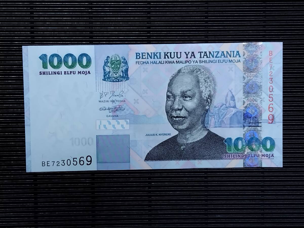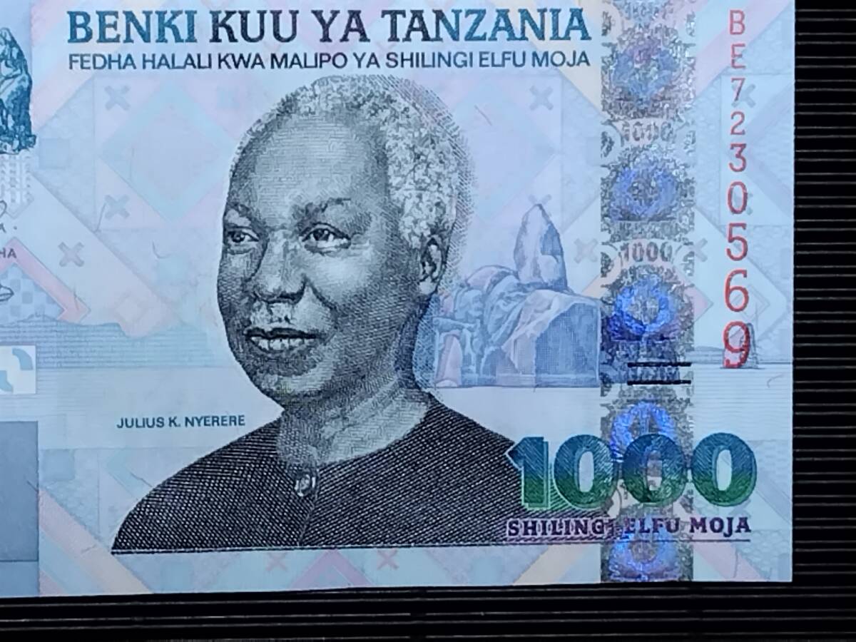 タンザニア 1000 Shillings札  コレクション向けピン札 ND=発行年未記載(2003年) 未使用~甘い未使用   ニエレレ(初期発行のボタン位置エラー版) p-36a #BE7230569