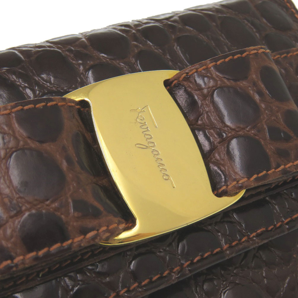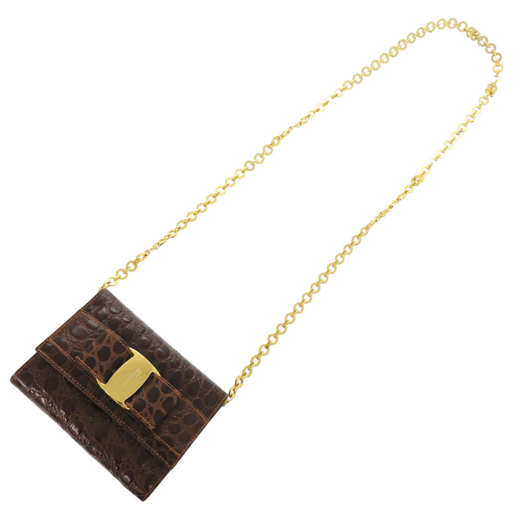 美品 サルヴァトーレフェラガモ ヴァラリボン AQ213202 型押しレザー ブラウン ショルダーバッグ 茶 0859 Salvatore Ferragamo