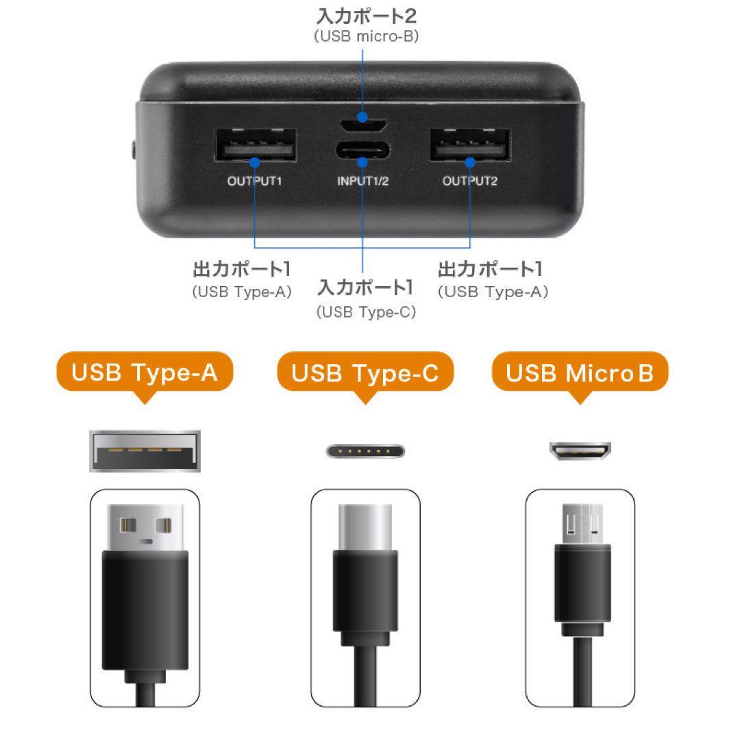 • 【二台同時充電 スマホ充電器】2つのUSB-A出力ポートを備え、2台のデバイスを同時に充電することが可能で、旅行先で友人や家族とシェアできるし、複数のデバイスを持ち歩く方も、充電を待たせません。本体への蓄電はmicroUSBとType-C2種類の入力ポートから選べます。Type-Cケーブルであれば1本だけでスマホにもバッテリー本体にも充電でき、ケーブルの使い分けは必要ありません。
