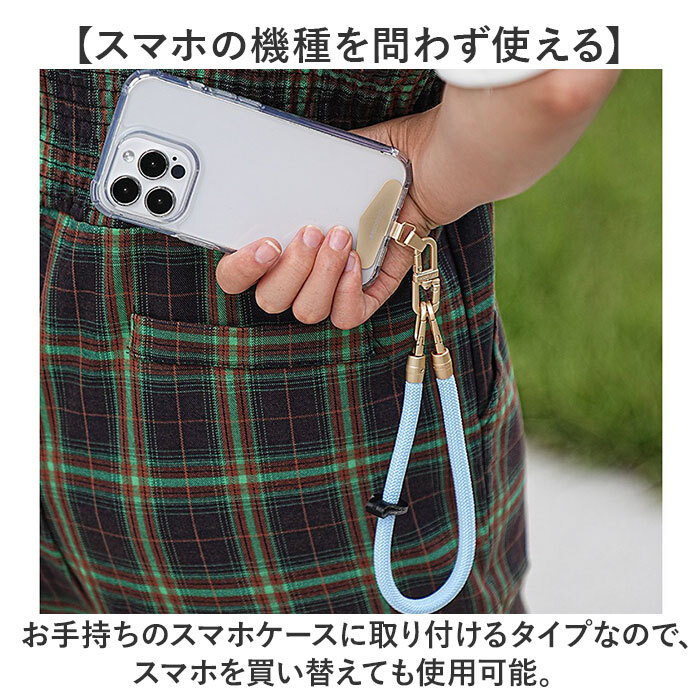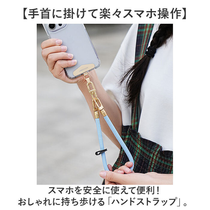 | 商品説明 | ・・【手首に掛けて楽々スマホ操作】 ・スマホを安全に使えて便利!おしゃれに持ち歩ける「ハンドストラップ」。 ・【挟んでストラップをサクッと装着】 ・スマホとケースの間に挟む、プレート付き。金具でストラップの着脱もワンタッチ。 ・(※1)シールが付属。ケースの形状や素材によっては使用できない場合もあります。 ・【スマホの機種を問わず使える】 ・お手持ちのスマホケースに取り付けるタイプなので、スマホを買い替えても使用可能。 ・【スマホの落下などを防げて安心】 ・手首に通しやすいショートタイプ。うっかり落としてしまう心配を軽減。 ・【お気に入りを選べるカラー】 ・選ぶのも楽しいカラーバリエーション。プレートのカラーはスタイリッシュ! ・(※2)プレートのカラーは2色ラインナップ。 |