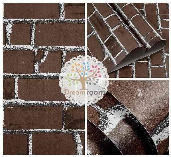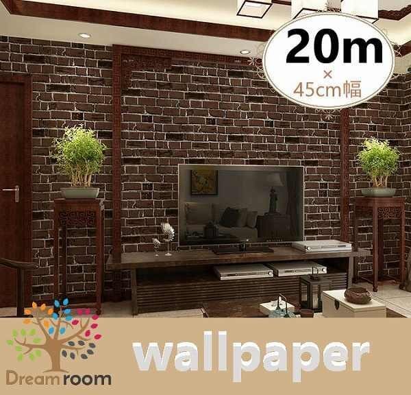 【 20m 】 3D レンガ ダークブラウン ウォール ペーパー ビンテージ 石垣 ストーン 壁紙 インテリア はがせる シール DIY