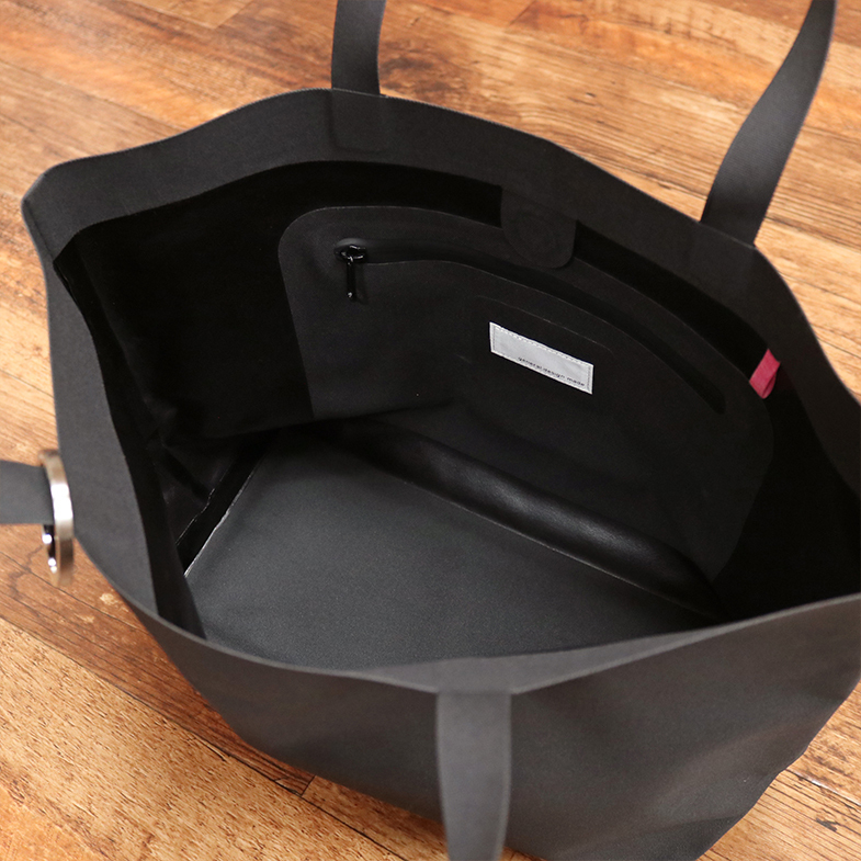 生地を熱圧着することで防水効果が得られるウェルダー加工を施したトートバッグ。S・M・Lの3サイズ展開で、こちらは【Mサイズ】となります。