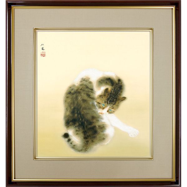 竹内栖鳳「斑猫」 複製色紙額 特殊工芸画 額入り K10-072
