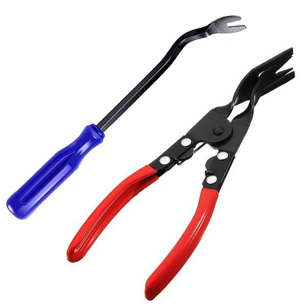 商品詳細 | 車の内張りや配線などを止めるクリップの中で穴の中にいれると広がるタイプの場合、無理に引くと割れてしまうことがあります。 専用クリップ外しツールを使えば簡単にクリップを外すことができます。 2本セットなので場所に応じて使い分けができるしメーカー定番品なので値段も割安でとてもお得です。 ■商品仕様 ・全長:245mm(プライヤー)/225mm(ドライバー) ・先端開口幅:11mm(プライヤー)/6.3mm(ドライバー) ・セット重量:260g |