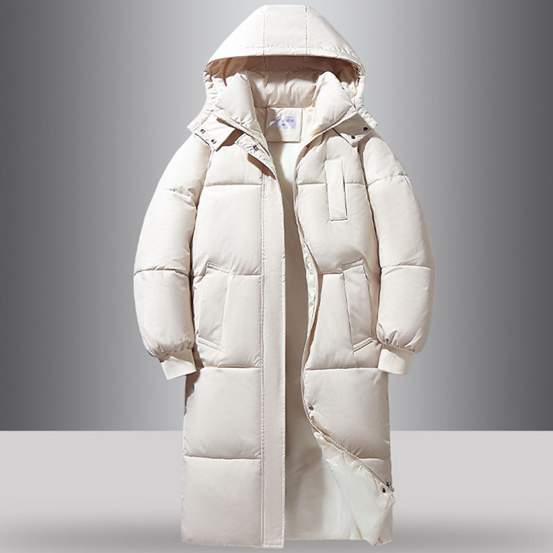 ・オーバーサイズ&ロング丈のフード付き中綿コート。