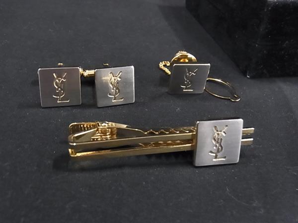 ■美品■ YVESSAINTLAURENT イヴサンローラン ネクタイピン タイタック カフスボタン 3点セット シルバー系×ゴールド系 DJ1792