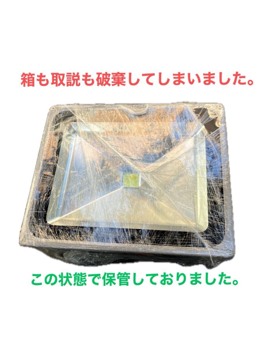 コロナ禍で仕事が一気に減った頃、屋根外壁のリフォームDIYで必要と思い購入致しました結果一度も使用せず小さいサイズの投光器を使いこの大きな50Wは使用せず保管、写真を取り為に包装してあったビニールを破いたところです。説明書も箱もすでに処分してある為、簡易的ですが梱包して直ぐにお送り致しますわずらわしいお送り費用の重さやサイズ等気にせずこちらでお送り費用ご用意させて頂きます。