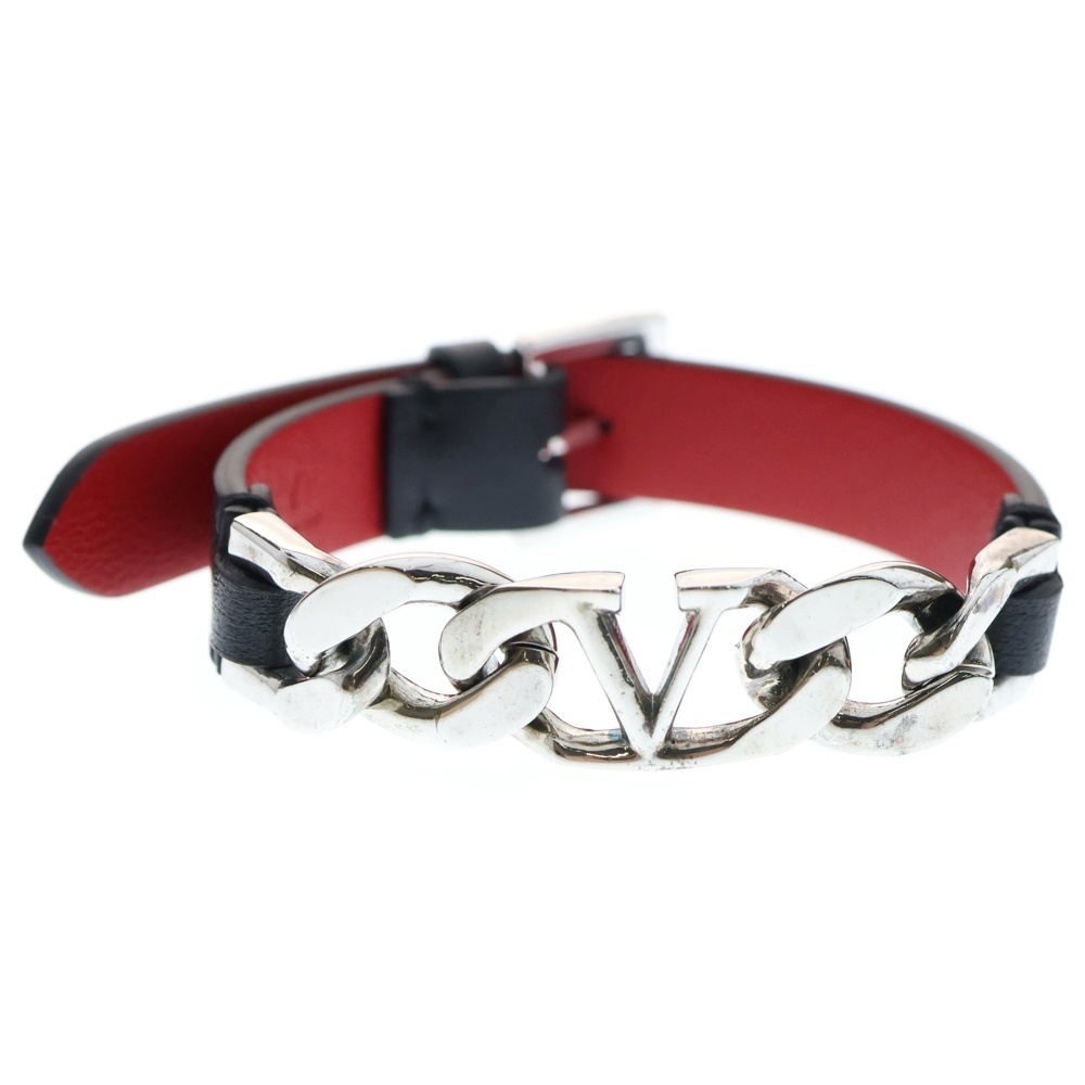 VALENTINO GARAVANI ヴァレンチノガラヴァーニ ロゴモチーフ チェーン レザー ブレスレット ブラック/レッド XY9J0Q02VTM