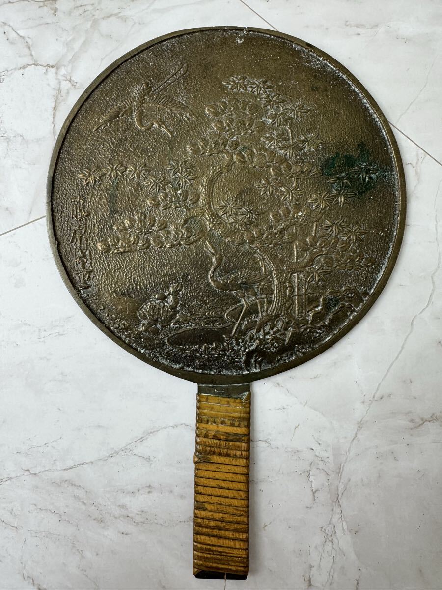☆銅鏡/手鏡 藤原 国市作? 骨董 アンティーク コレクション 保管品☆