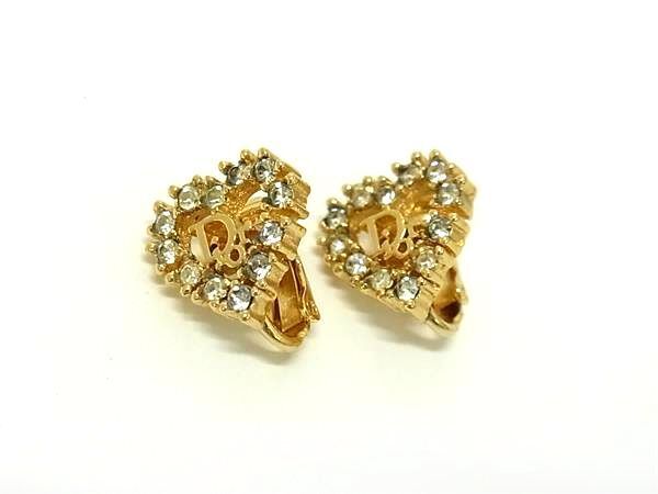 1円 ■極美品■ ChristianDior クリスチャンディオール ハート ラインストーン クリップ式 イヤリング レディース ゴールド系 BQ1091