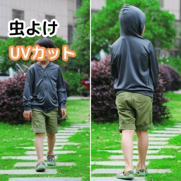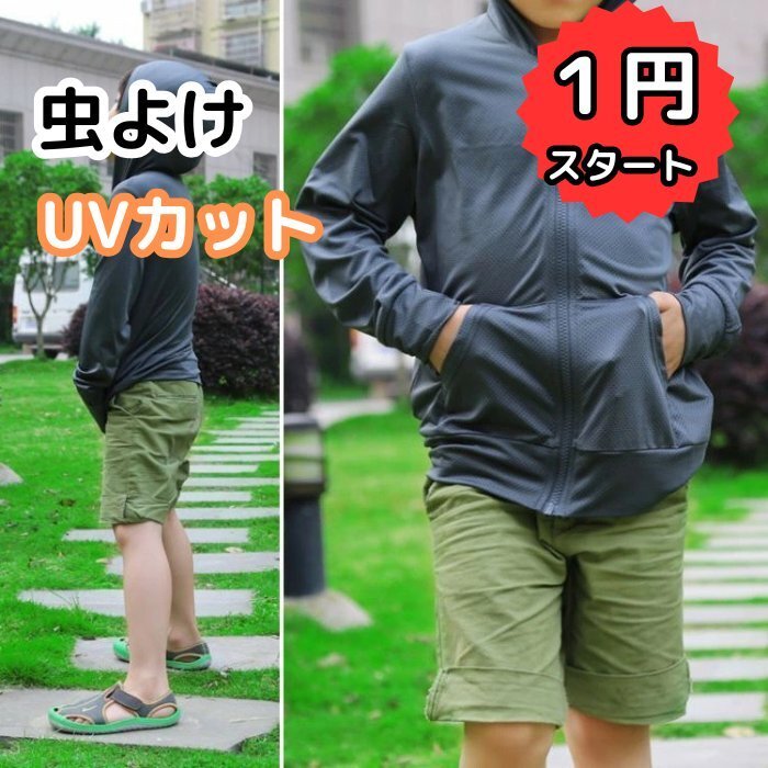 1円スタート ラッシュガード 子供用 グレー 灰色 130-140cm 日焼け防止 ひんやり 冷感 紫外線対策 訳あり 長期在庫品 虫 蚊から守る