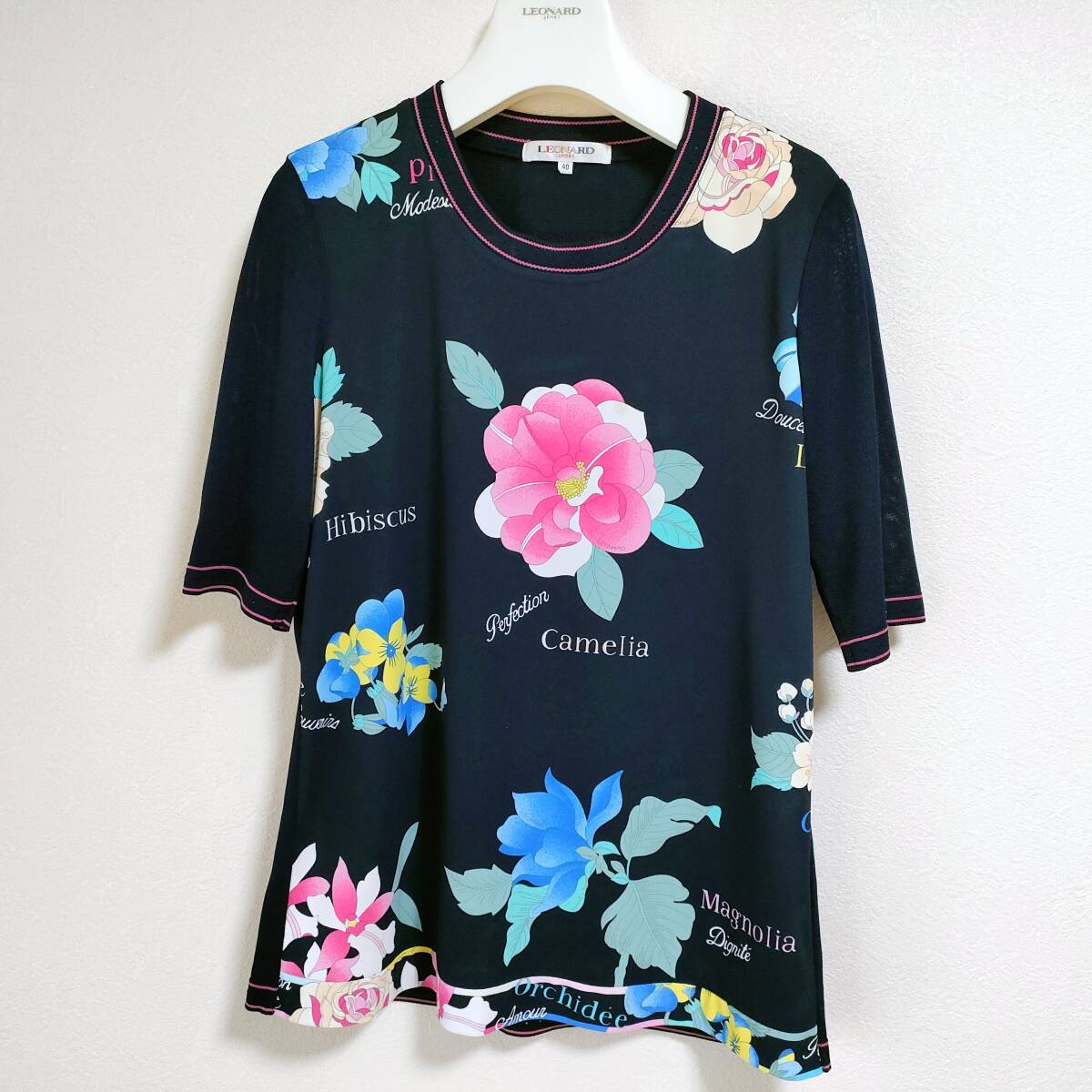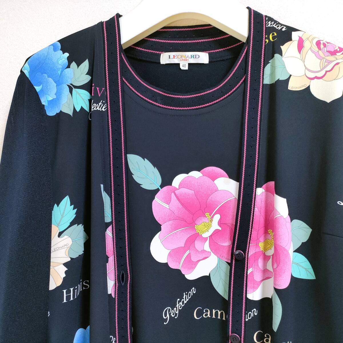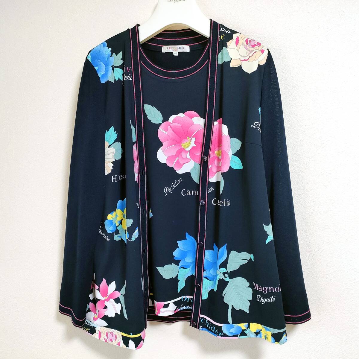 即決 送料込み 近年 極美品 レオナール アンサンブル カーディガン セット 大きめ40 紺 ネイビー