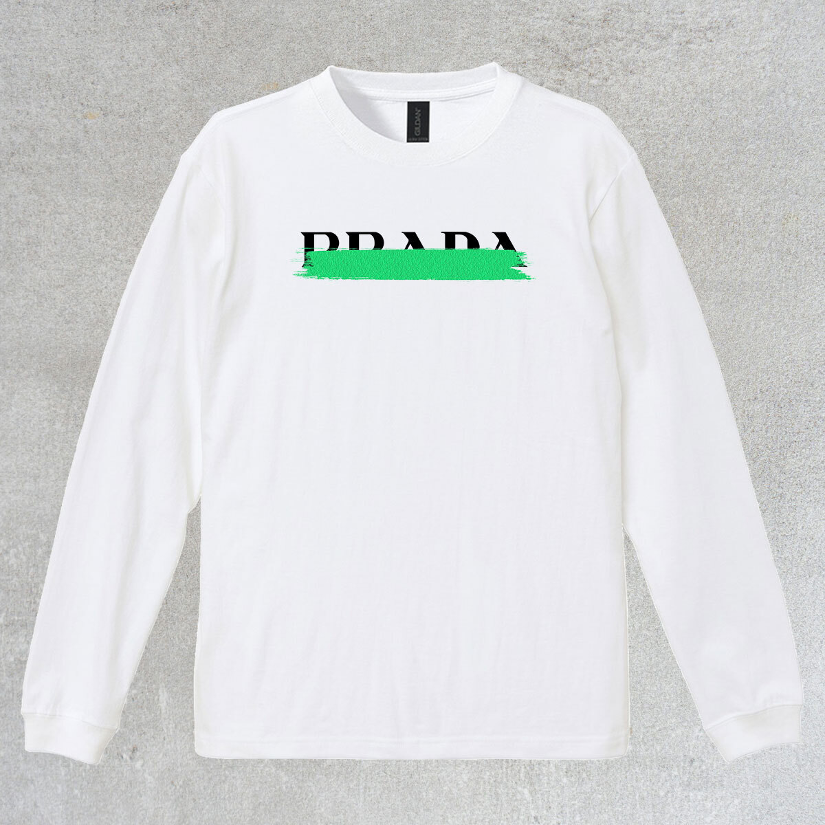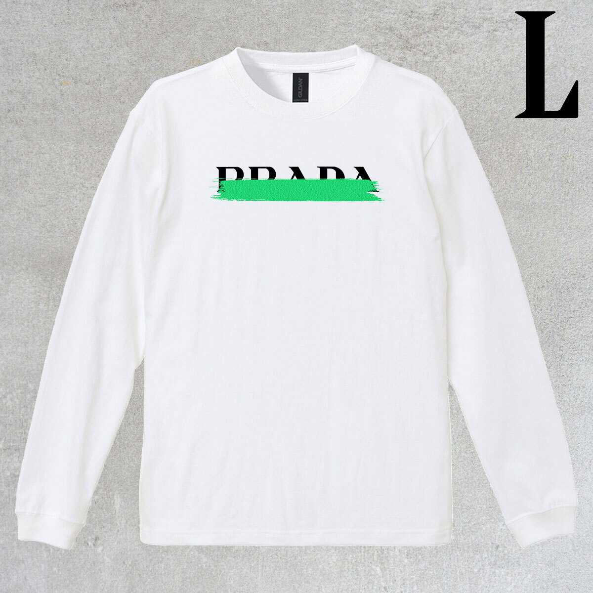 ロゴデザイン ペンキ柄 プリント リブ付き 長袖 Tシャツ ロンT シンプル カジュアル 6.0oz コットン100% ユニセックス PR L