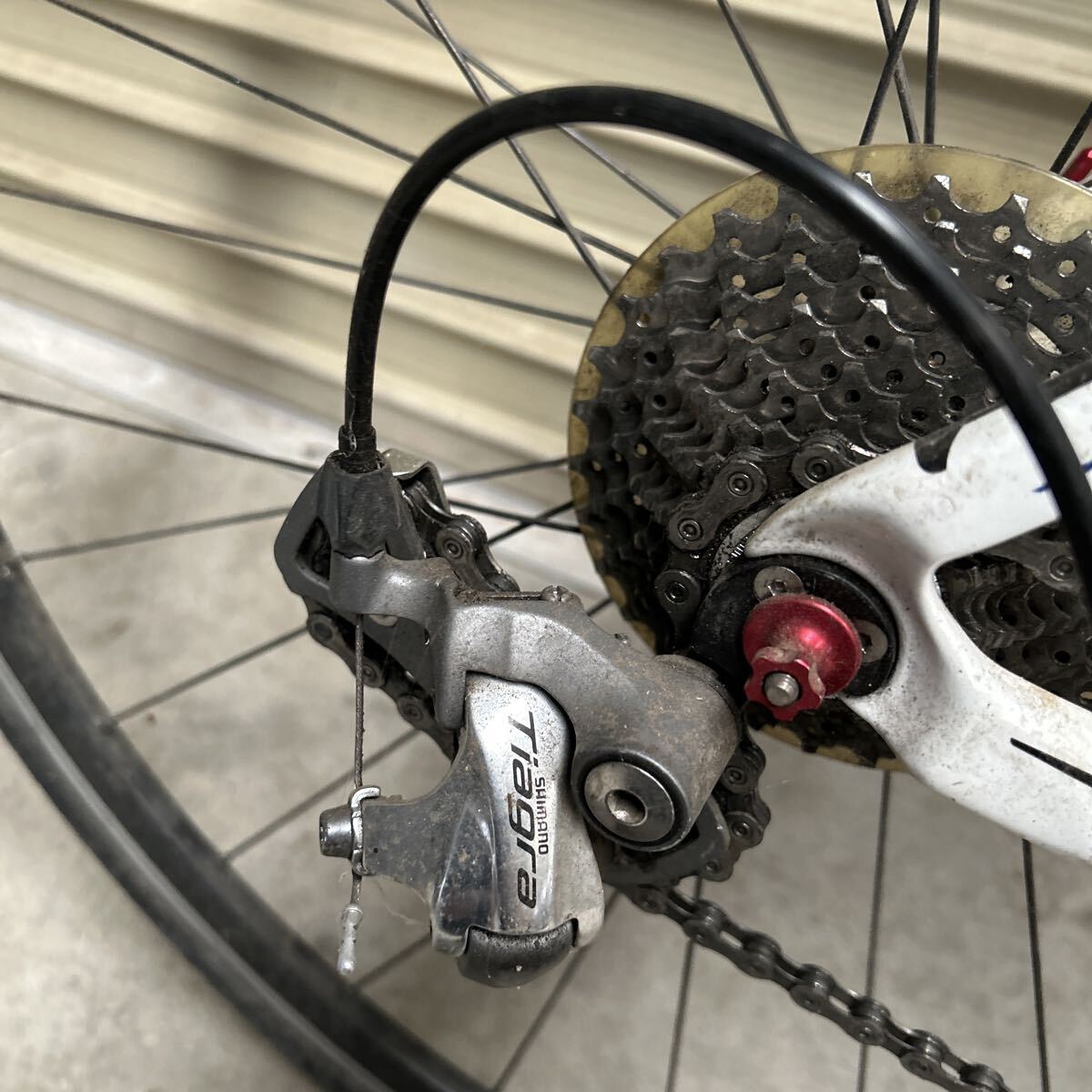 クランクはTiagraの最新型(4本スポークタイプ)に交換致しました。ご希望であれば旧タイプのクランク(まだまだ使用可能な美品)を差し上げます。