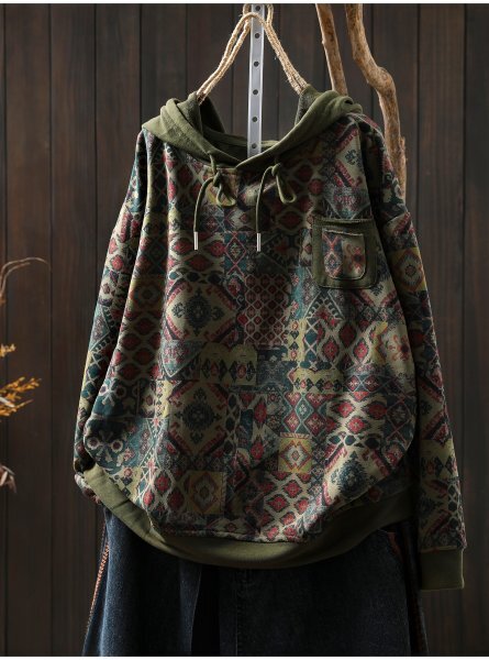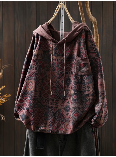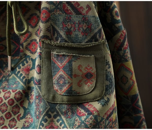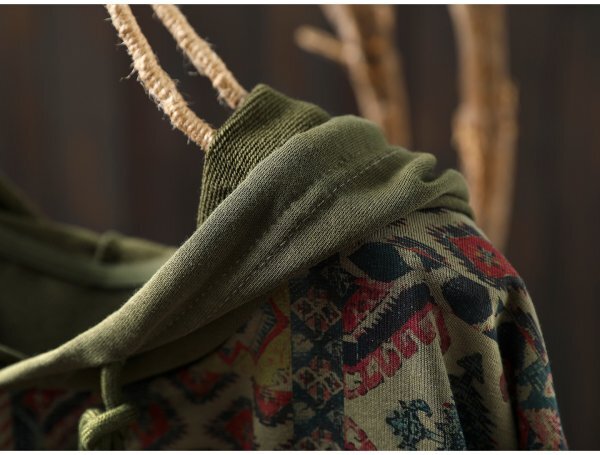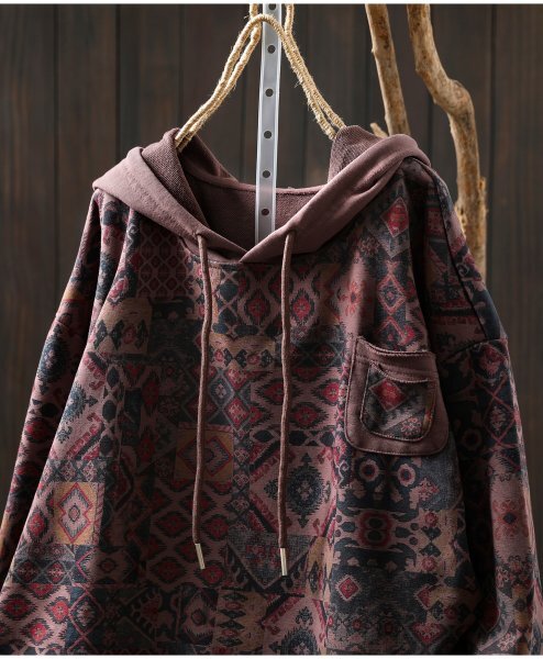 mn 2509 フードジャンーパー トレーナー トップス チュニック ゆったり 綿100% ナチュラル プリント花柄3