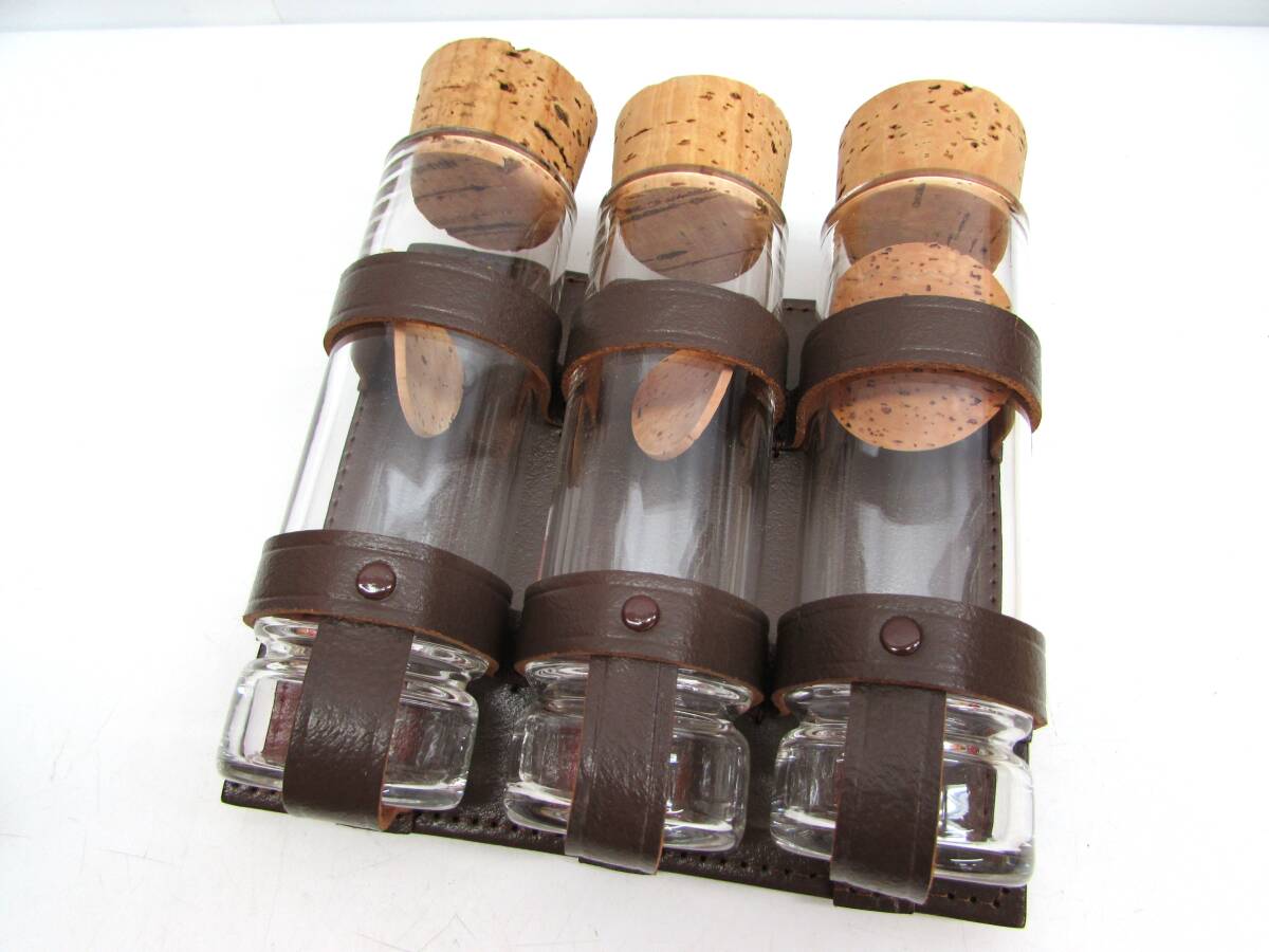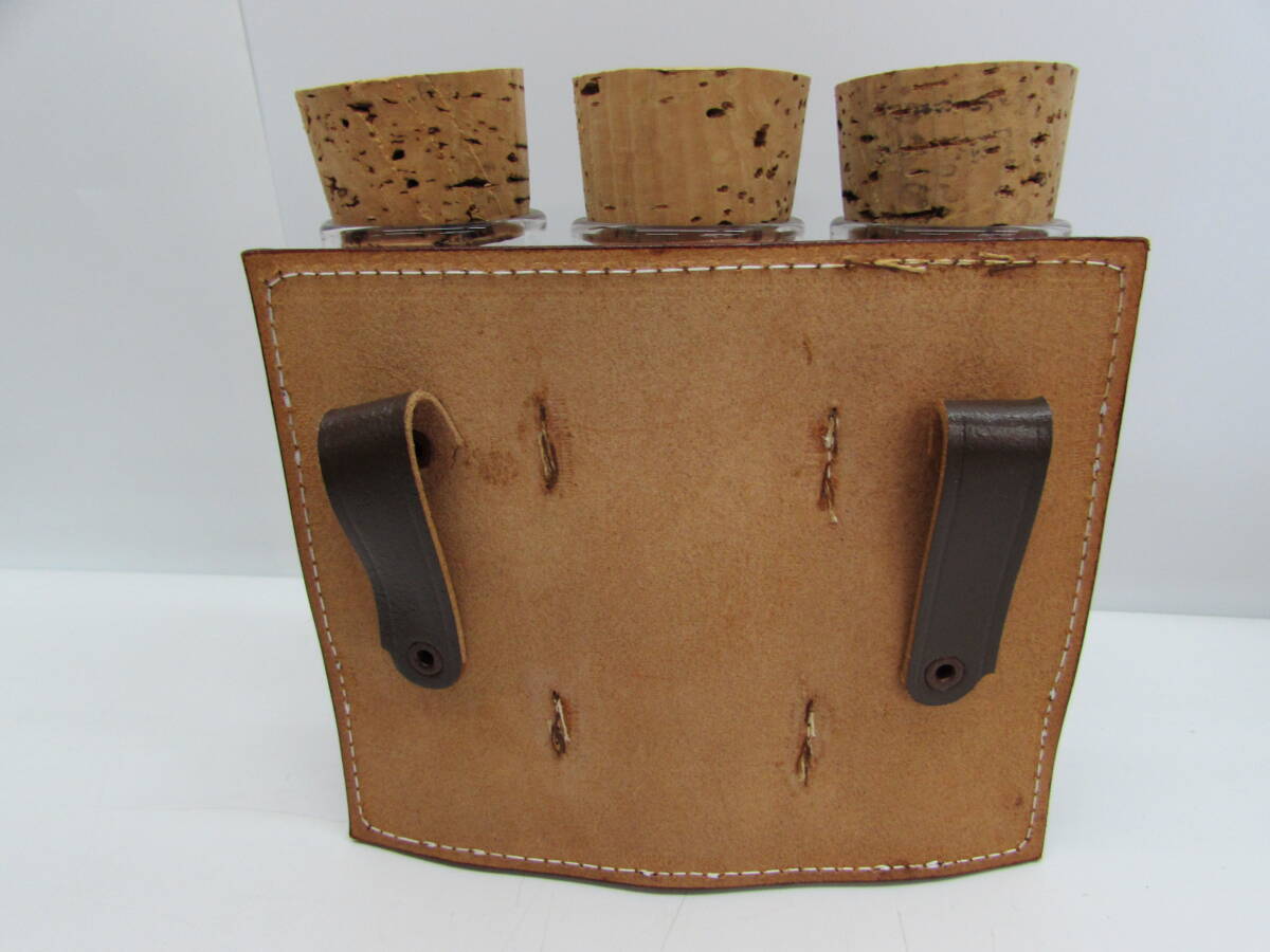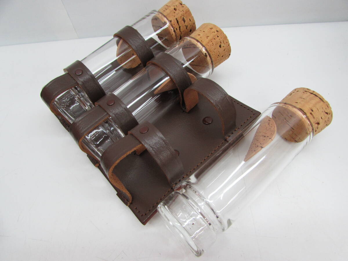 | 美品 毒瓶 毒壺 殺虫瓶 殺虫管 昆虫標本 昆虫採集 ガラス瓶 3本 コルク栓 本革 レザー ベルト通し |