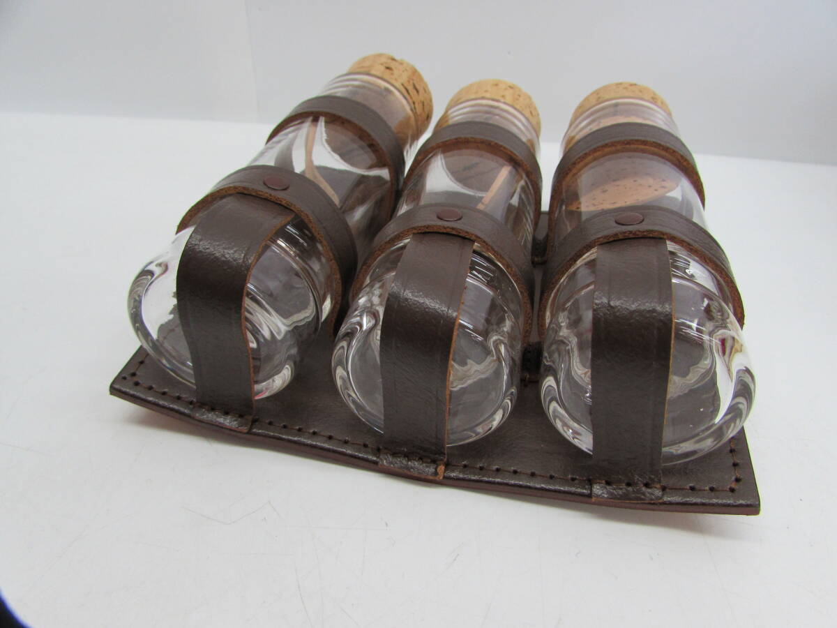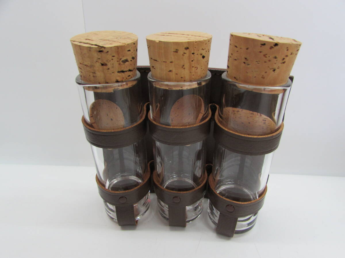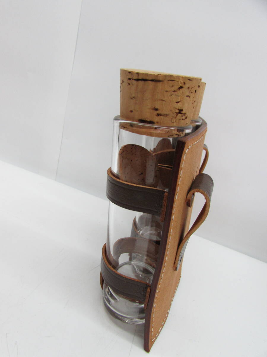 | 美品 毒瓶 毒壺 殺虫瓶 殺虫管 昆虫標本 昆虫採集 ガラス瓶 3本 コルク栓 本革 レザー ベルト通し |