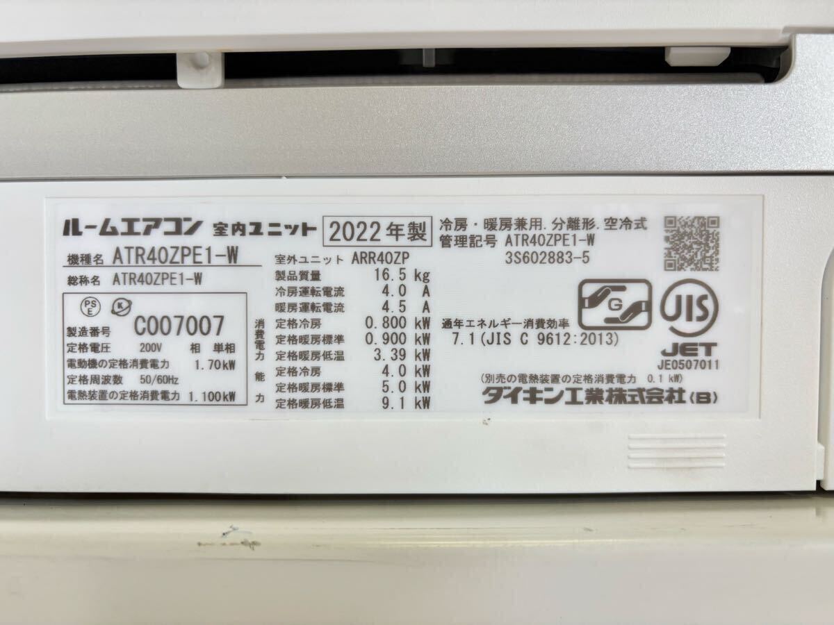 本機は〈2022年製 DAIKIN〉の比較的新しいモデルで、コンパクトながらパワフルな冷暖房を実現します。
