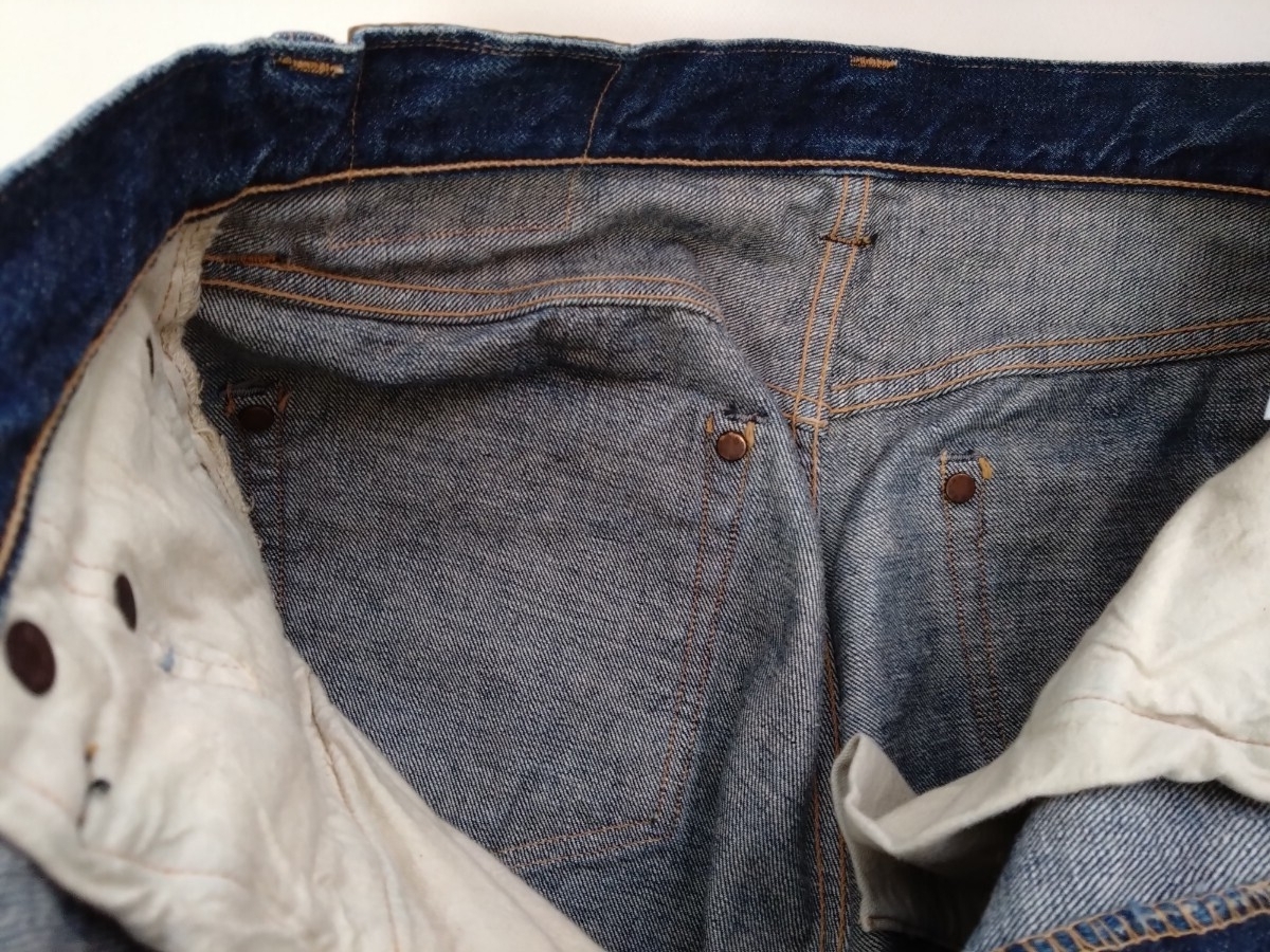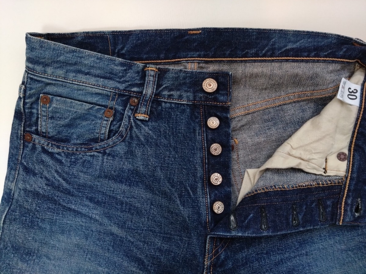 lotナンバーはわかりませんが、紙パッチのユーズド加工品です。
