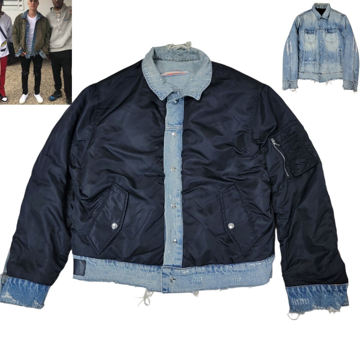 ジャスティンビーバーさんが着用していたAMIRIのREVERSE TRUCKER BOMBERにあこがれて、リメイクを得意とする古着屋を通じ依頼して個人オーダーした1着です。