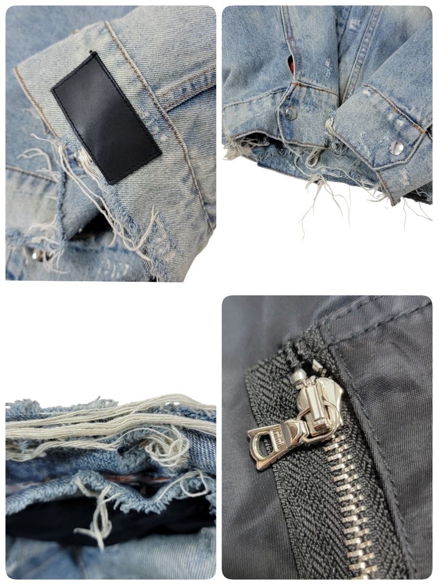 Levi's(リーバイス)のデニムジャケットを2種類解体し、古着のフライトジャケットと合わせて再構築作成しています。