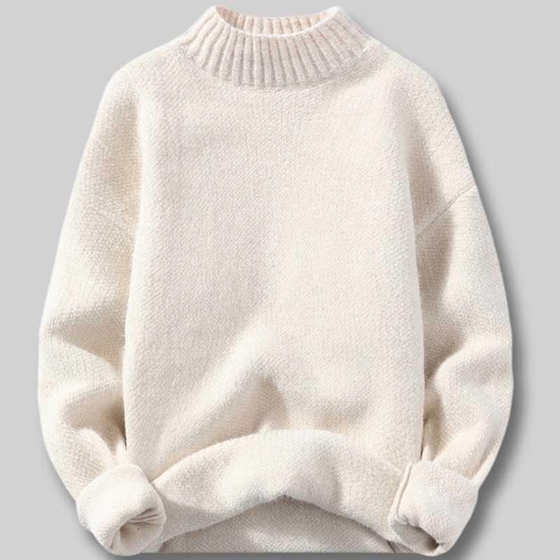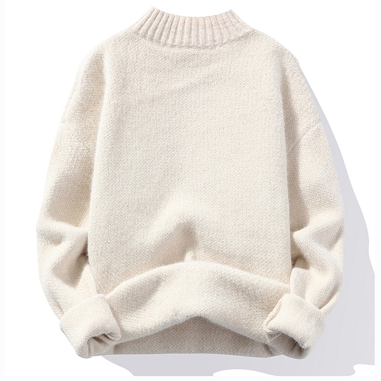P923-L 新品 DCKMANY ウール混 ニットセーター メンズ モックネック プルオーバー トップス ハイネック 編み 厚手 防寒 秋冬/オフホワイト