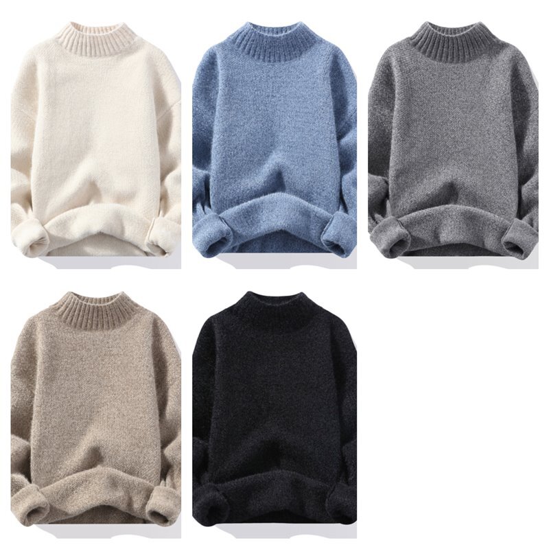 P923-L 新品 DCKMANY ウール混 ニットセーター メンズ モックネック プルオーバー トップス シンプル ハイネック 無地 厚手 防寒 秋冬 おしゃれ 日常 カジュアル ドロップショルダー