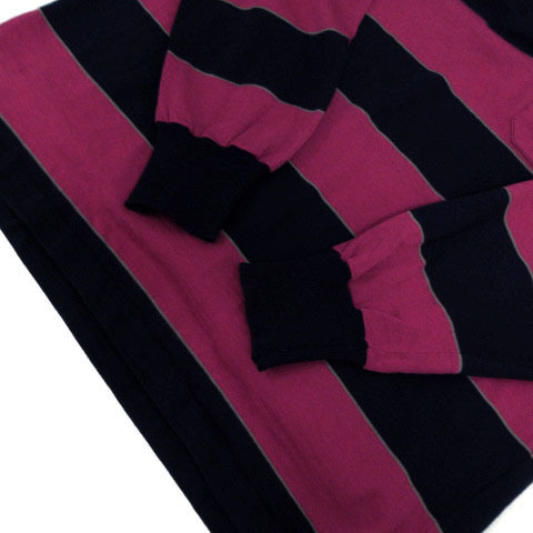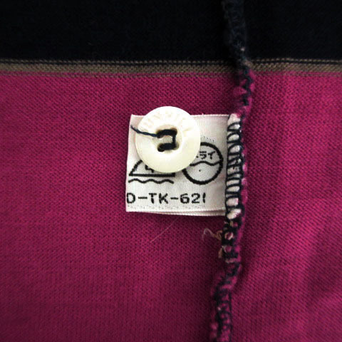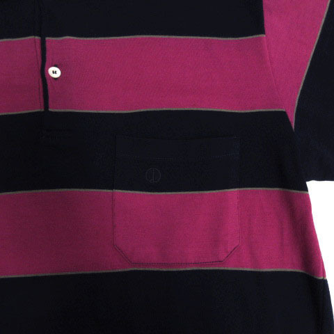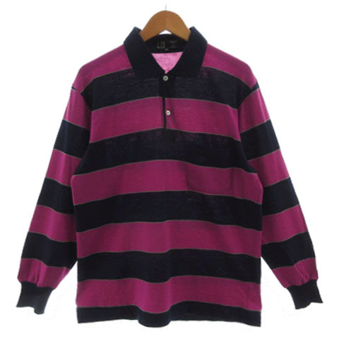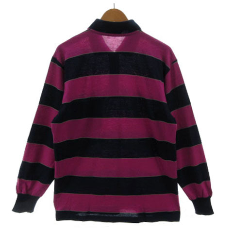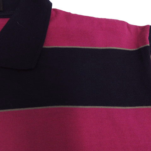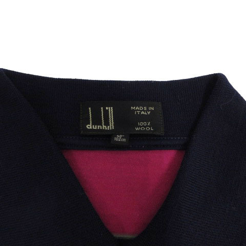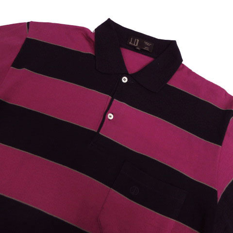 ダンヒル dunhill ボーダーニット ロングスリーブポロ ロゴ刺繍 イタリア製 ウール ネイビー 紺 パープル系 ピンクパープル グレー 40