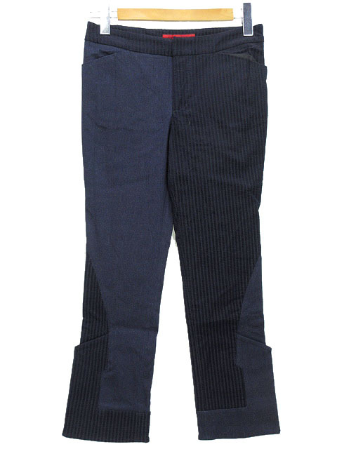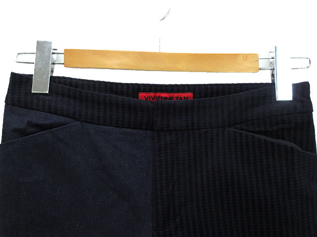ヴィヴィアンタム VIVIENNE TAM ストライプ 切替 パンツ 36 ネイビー 紺 ボトムス センソユニコ レディース