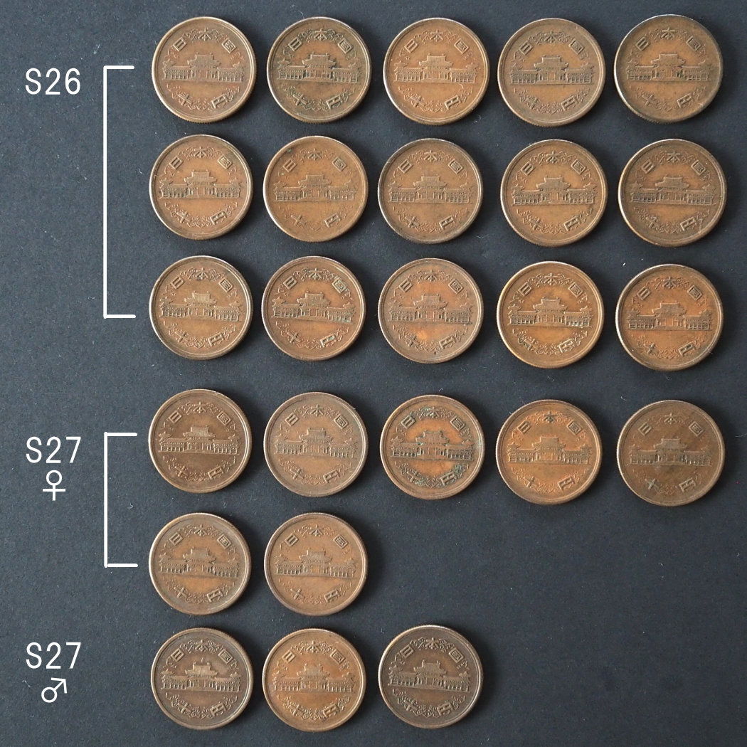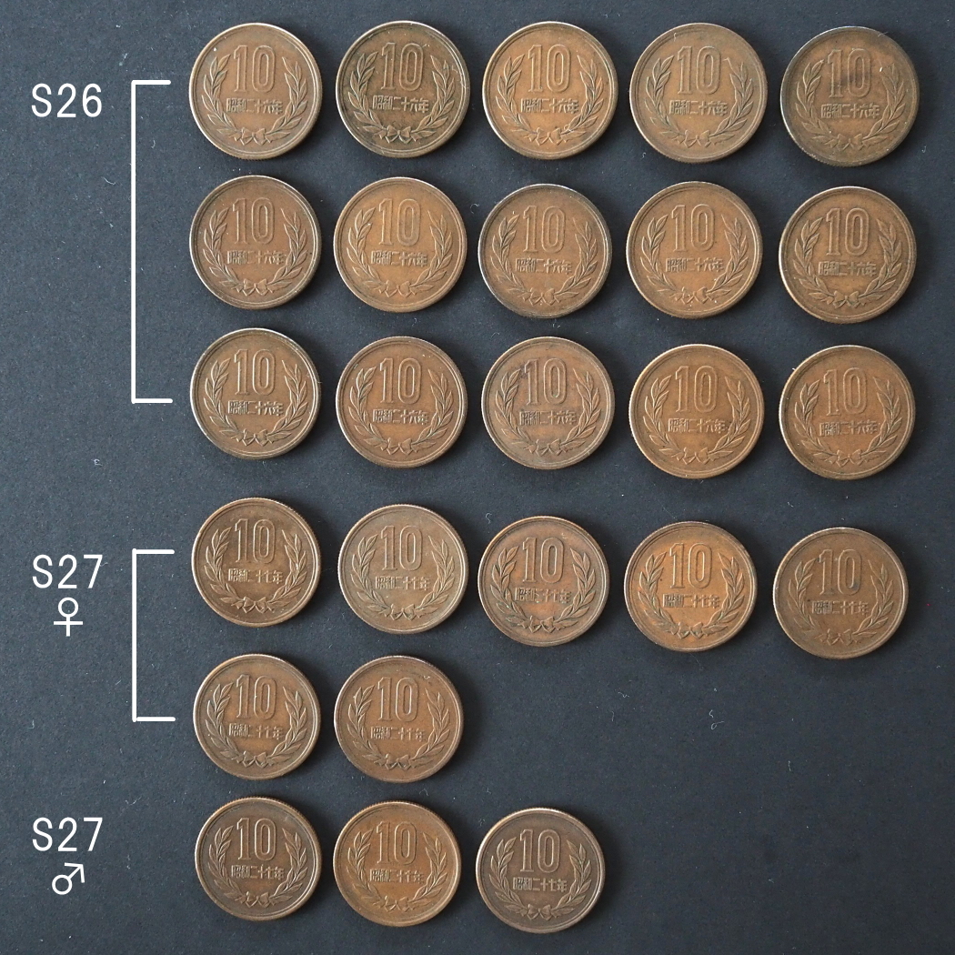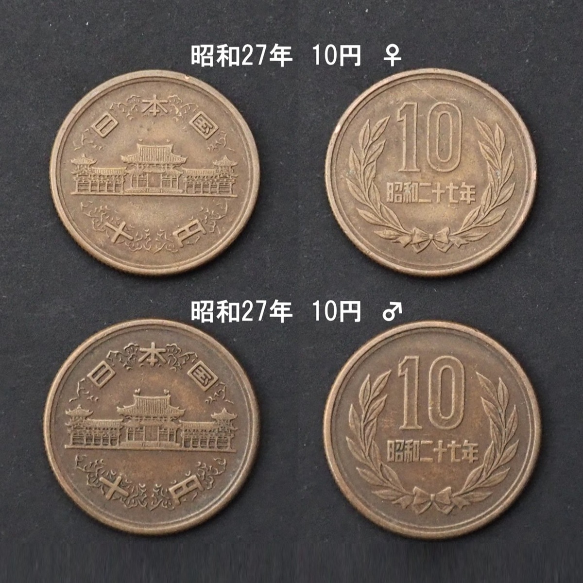 27年の硬貨は鳳凰の尾が跳ね上がっていて短いもの(♀雌)と
