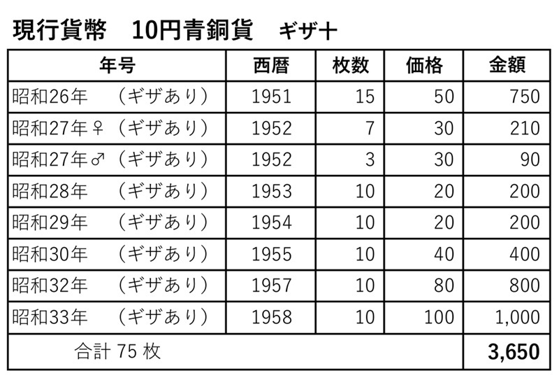 10円 青銅貨 昭和26年~昭和33年 ギザあり ギザ十 10円玉