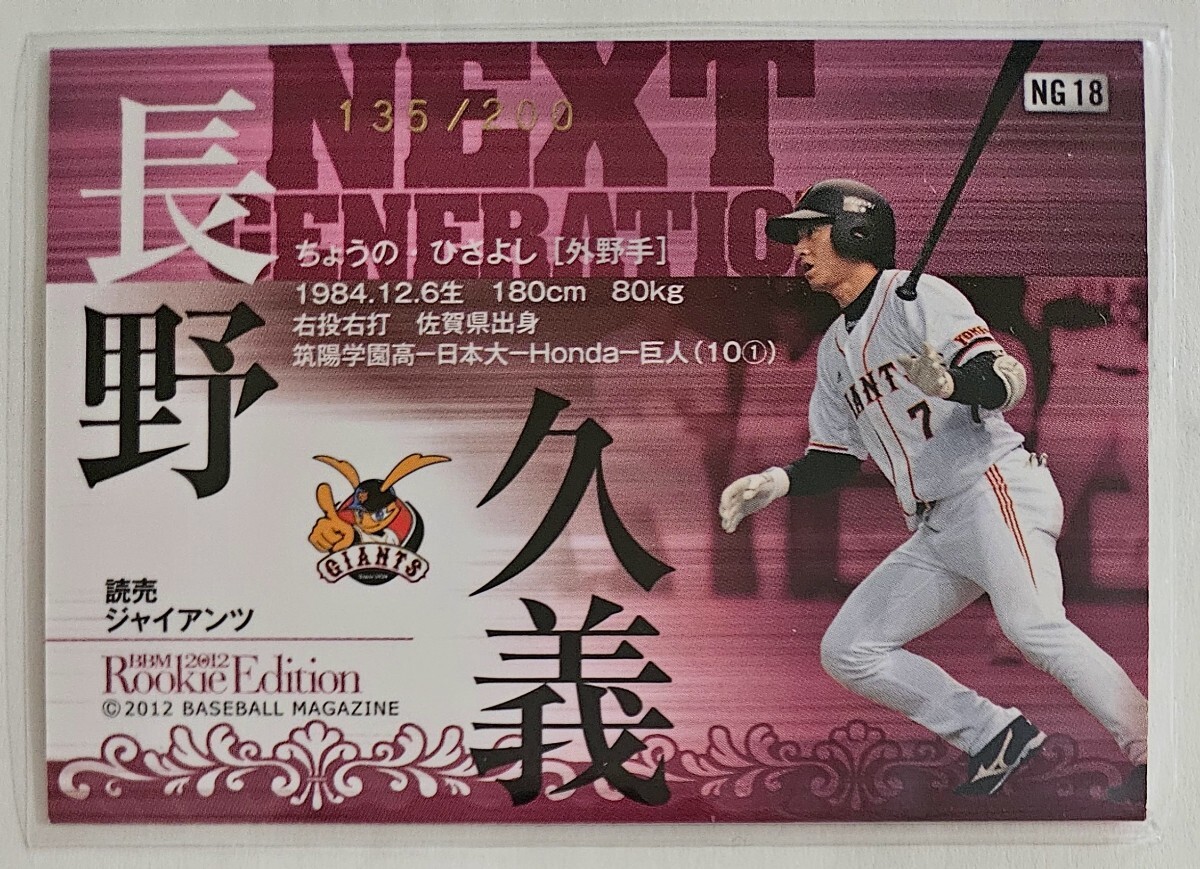2012年BBM ルーキーエディション NEXT GENERATION 200枚パラレル 長野久義 巨人 ジャイアンツ
