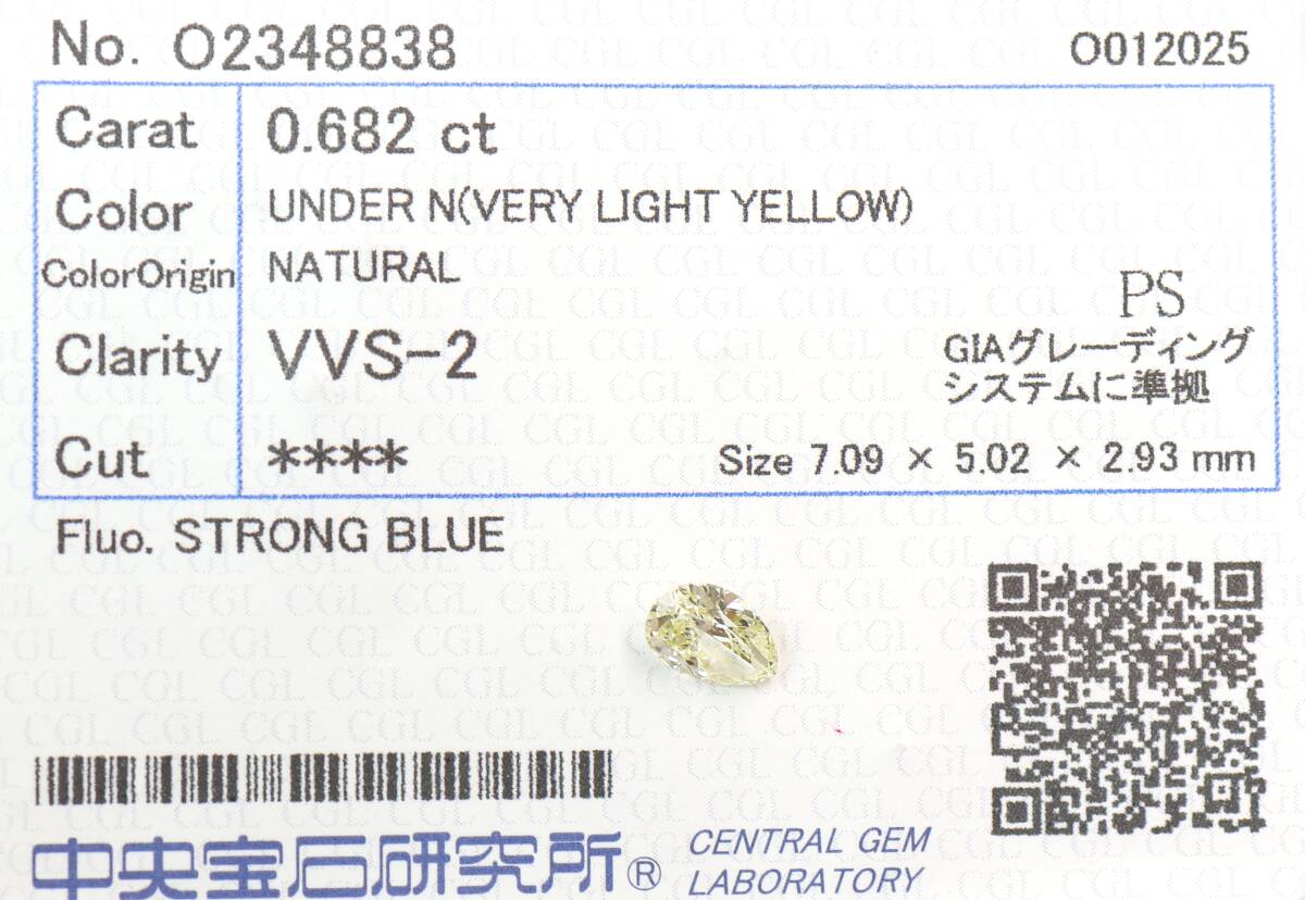 VVS2!0.682ct 天然ダイヤ VERY LIGHT YELLOW(ナチュラルカラー)PS