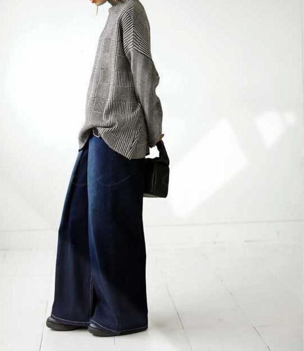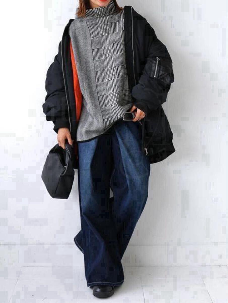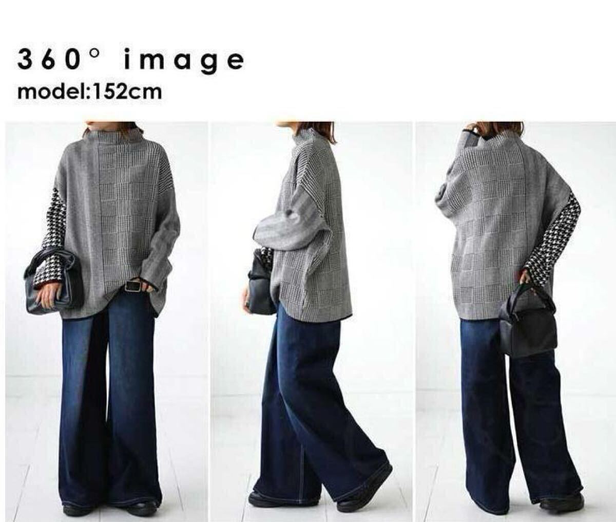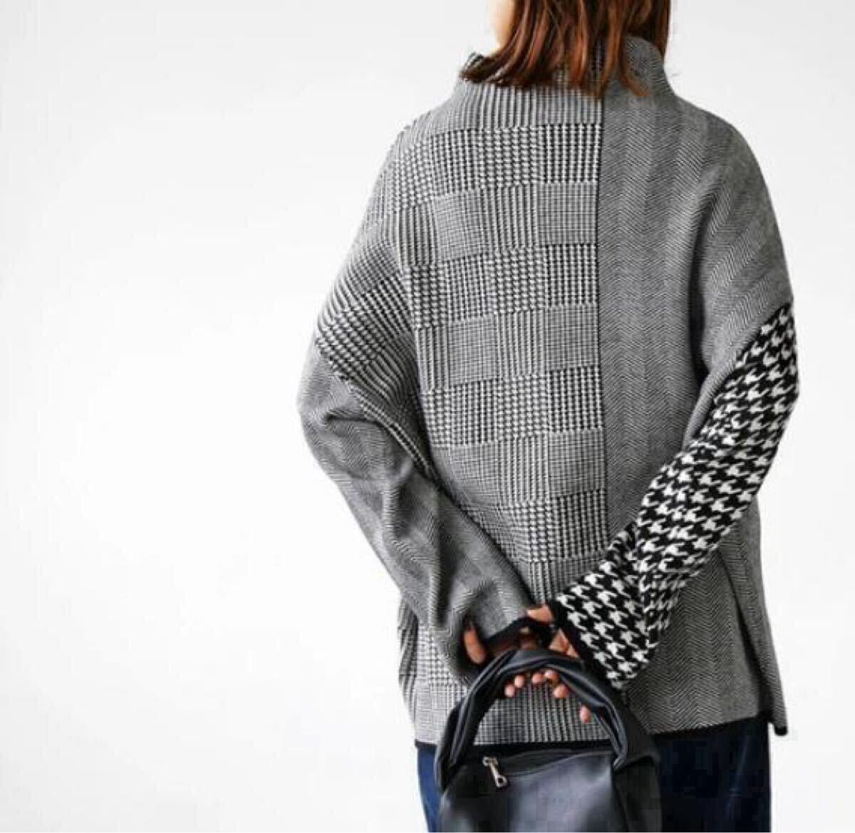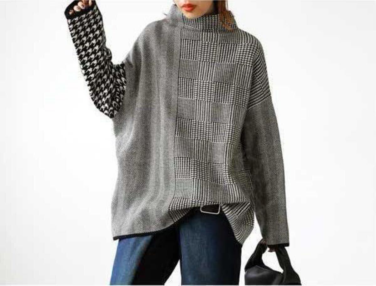 ◎新品 ハイネック タートルネック ニット 千鳥格子 オーバーサイズ 韓国 モダンチェック