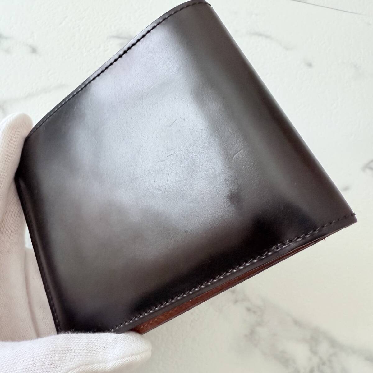ETTINGER エッティンガー イギリス レザー 本革 牛革 二つ折り財布 財布 メンズ ブラック×ブラウン 日本製 美品 になります。 ★1934年創業の英国王室御用達レザーグッズブランド、ETTINGER 1934年創業の「ETTINGER(エッティンガー)」は、そんな栄誉に浴するブランドのひとつだ。最高級のレザーと熟練職人の技を駆使して作り上げられるレザーグッズは、英国紳士たちからの信頼を獲得し、1996年に当時のチャールズ皇太子(現国王3世)からロイヤルワラントを授与された。 ★サイズ H9.5㎝ W11㎝ 多少の誤差はご了承下さい。 ★お札スペース×2 カードスペース×8 ★付属 箱 ★状態 中古 表面僅かな小傷、僅かな一部テカリ、内側レザーに小さな点の様な小さな汚れなどございますが、使用感は少なく、全体的には未使用にも近い良い状態です。 中古品もご理解の上、ご検討頂けましたら幸いです。 | ||||||||