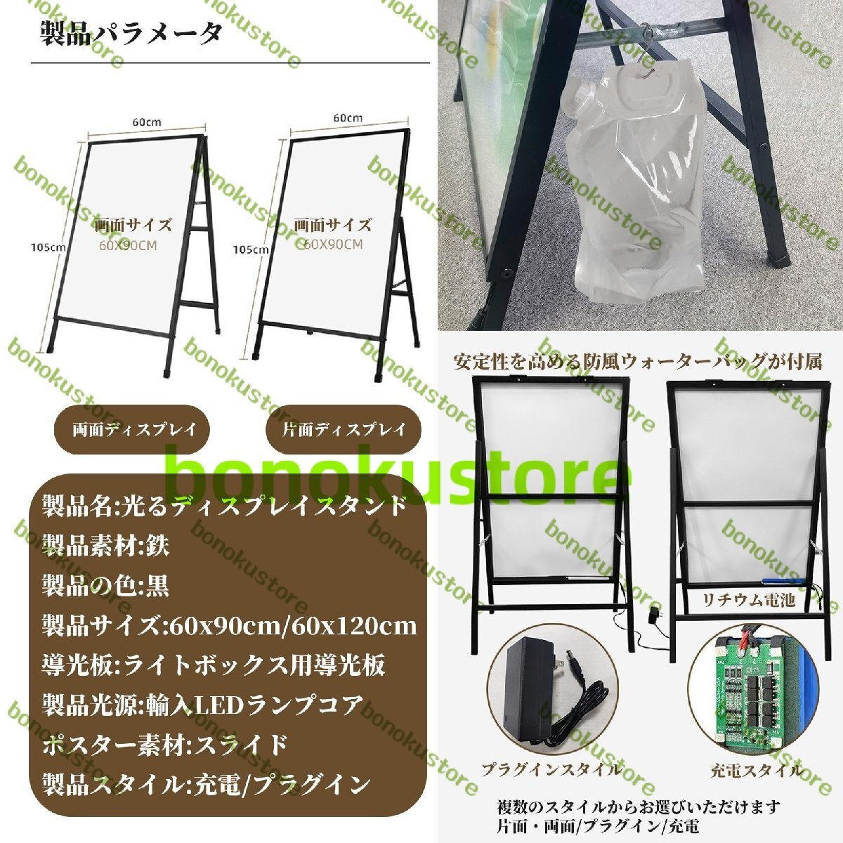 FORRTY LED電飾スタンド看板 電飾看板 LEDポスターパネル 光るポスターフレーム LEDパネル LEDパネルポスたー A4 店舗用看板 片面または両面オプション | 眩しいLED | 収納用に折り畳み可能、防風・防雨、オプションのプラグインスタイル/充電スタイル カフェ、レストラン、バー、小売店、ヘアサロン、美容室に適しています(両面ディスプレイ B 60X90cm)