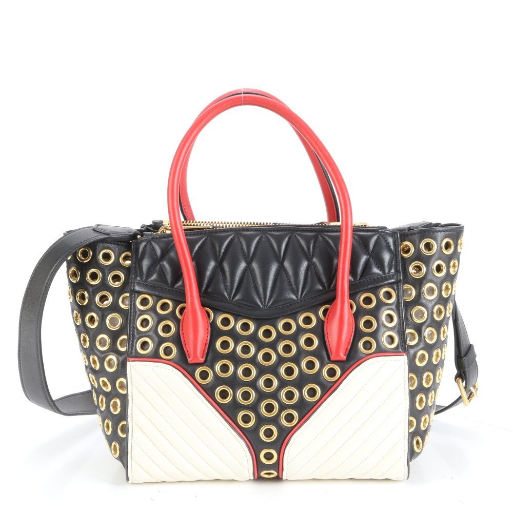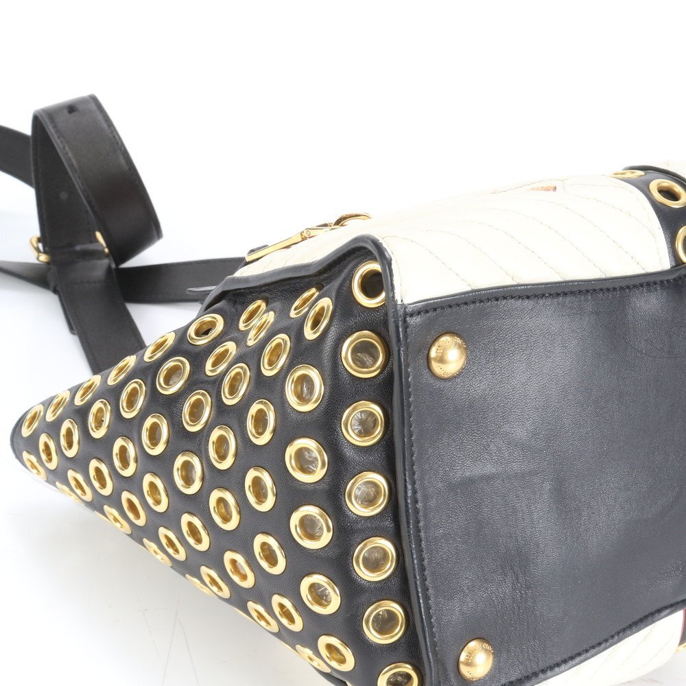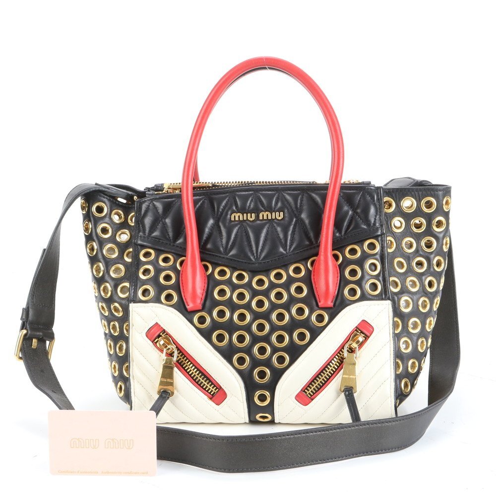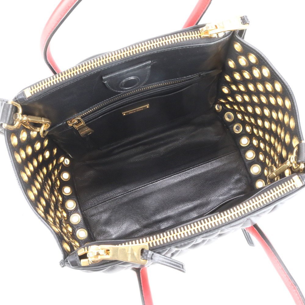 1円■極美品 ミュウミュウ ギャランティカード バイカー パンチング レザー 2WAY トート バッグ 斜め掛け ショルダー レディース EUE CT2-4
