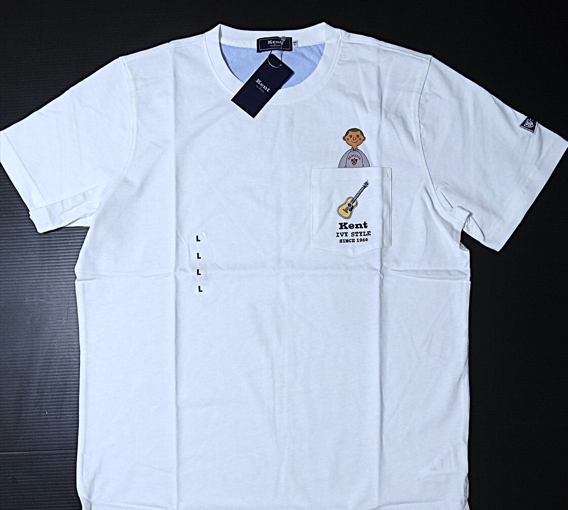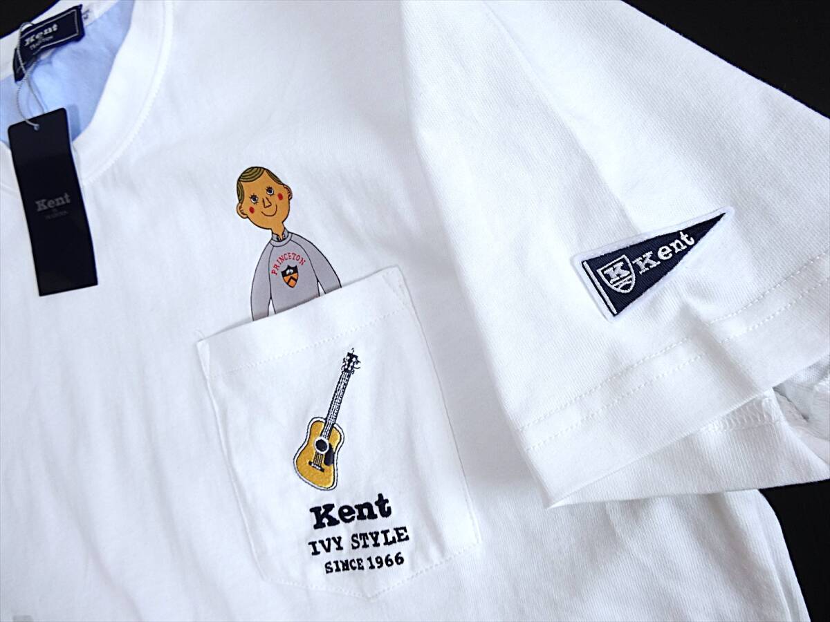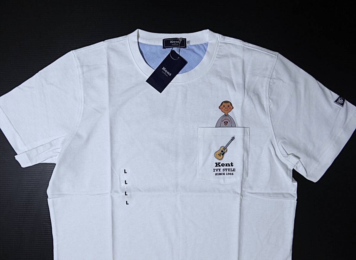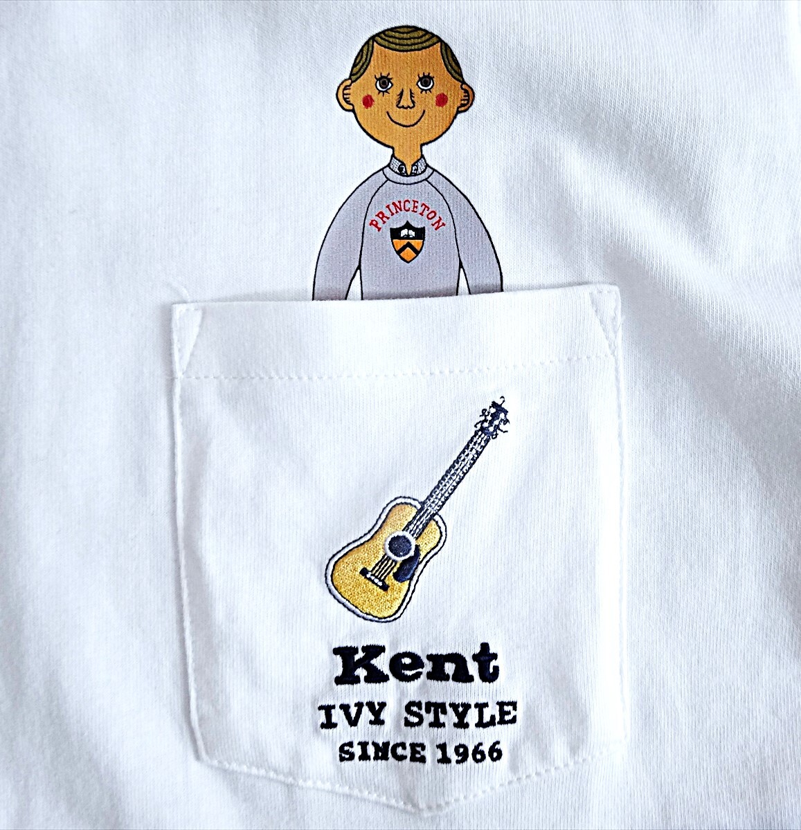 ★VAN JAC ヴァンヂャケット SINCE 1966 Kent IN TRADITION×KAZUO HOZUMI(穂積和夫)アイビーボーイ&アコーステックギター&ロゴ刺繍  Tシャツ L ★
